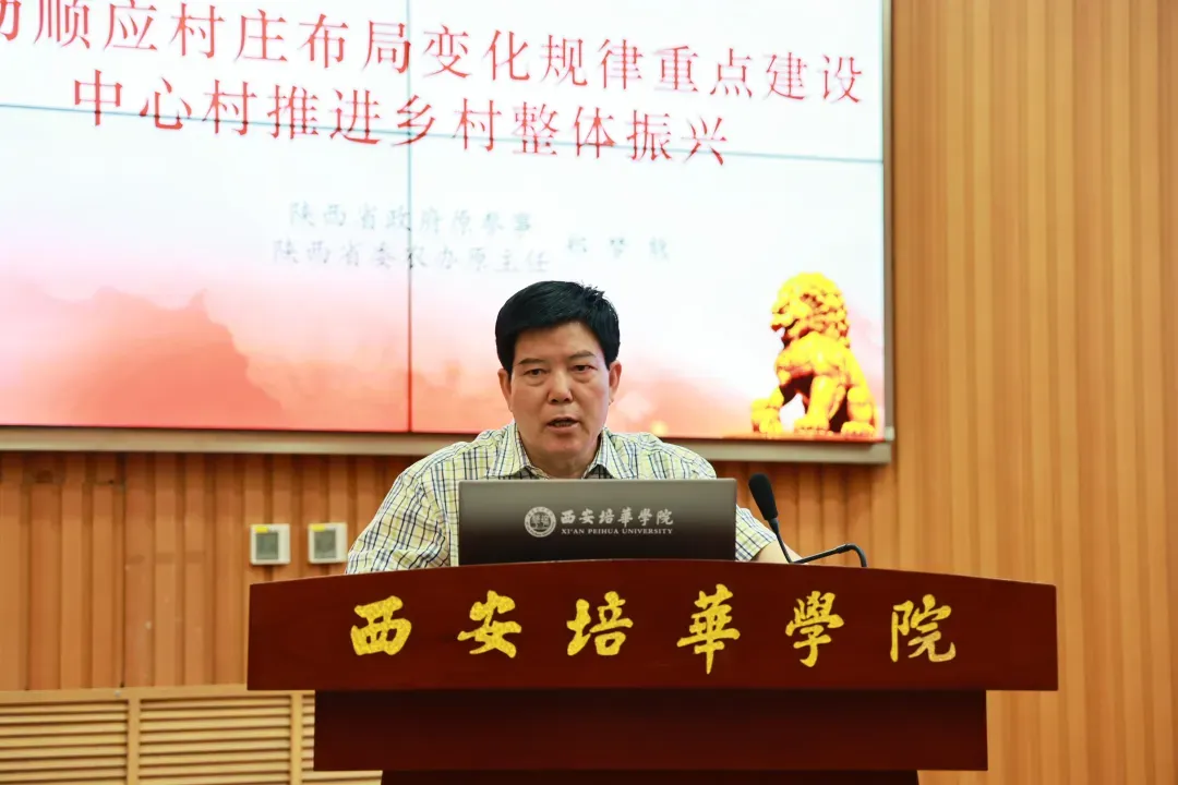 陕西省政府参事、陕西省委农村工作领导小组办公室原主任郑梦熊作题为《主动顺应村庄布局变化规律 重点建设中心村推进乡村整体振兴》的报告