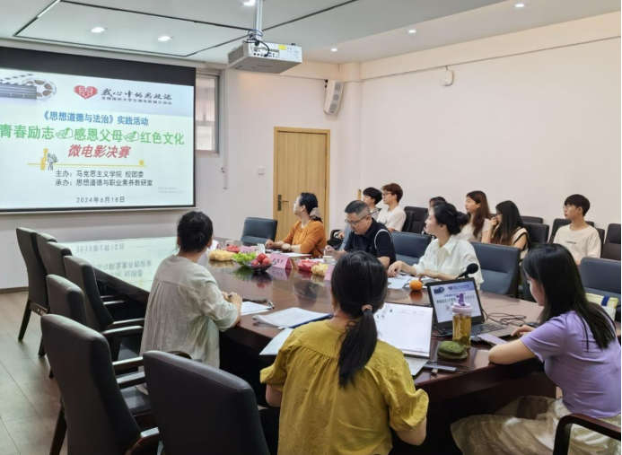 6月19日,长沙商贸旅游职业技术学院马克思主义学院和校团委联合举办的“思想·道德·法治”微电影大赛决赛评选在学校德业楼B205举行,学生通过微电影这一创新形式,深入思考思想、道德与法治的内涵,展现当代大学生对社会问题的关注和对价值观念的追求。