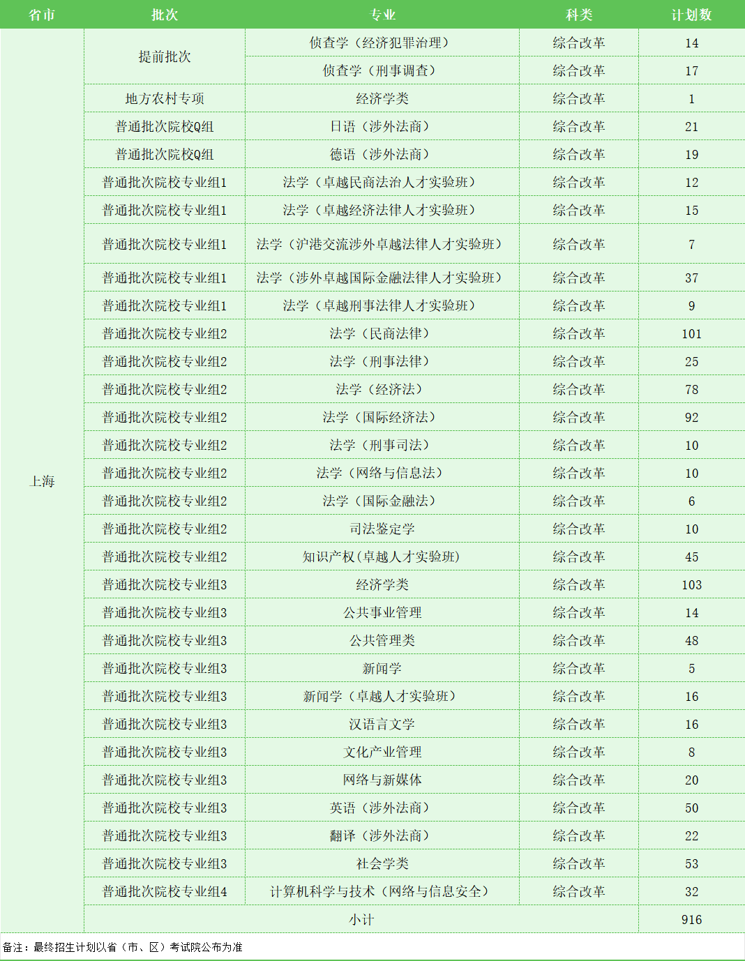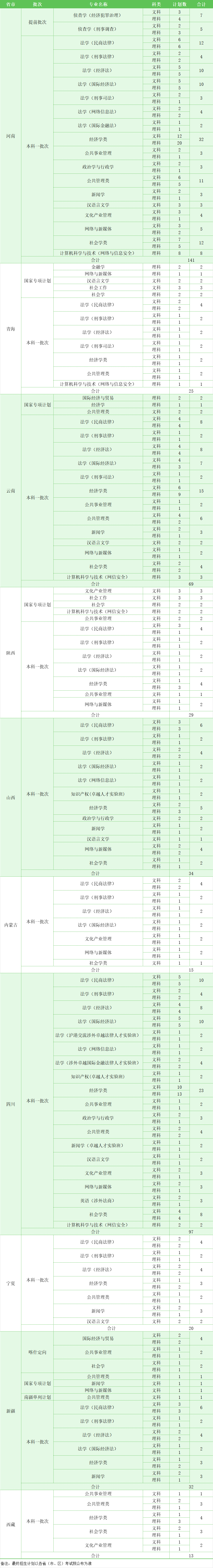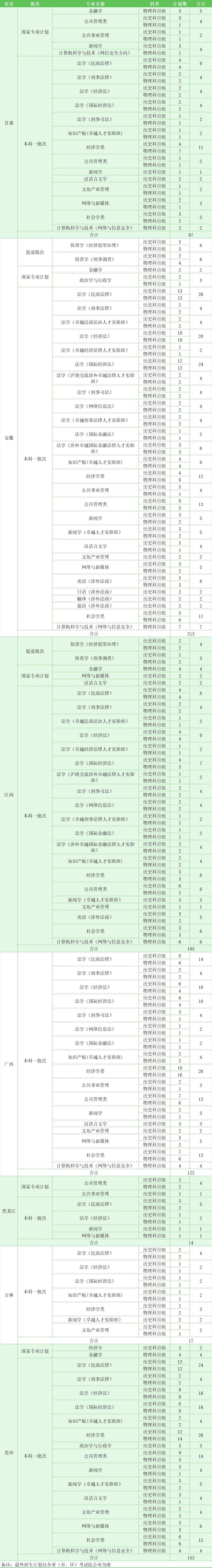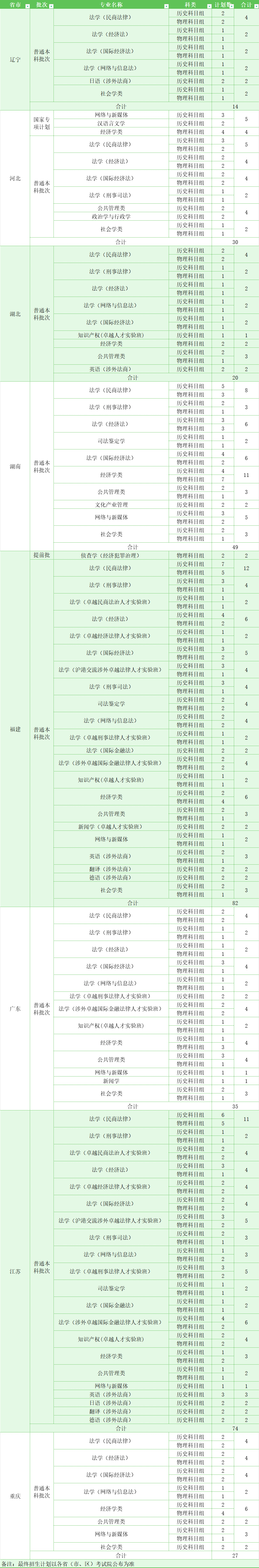 华东政法大学2024年本科招生计划如下: