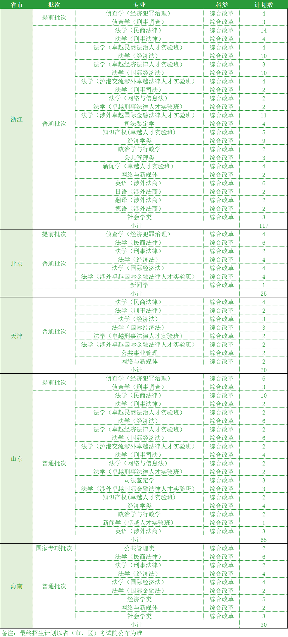 华东政法大学2024年本科招生计划速览