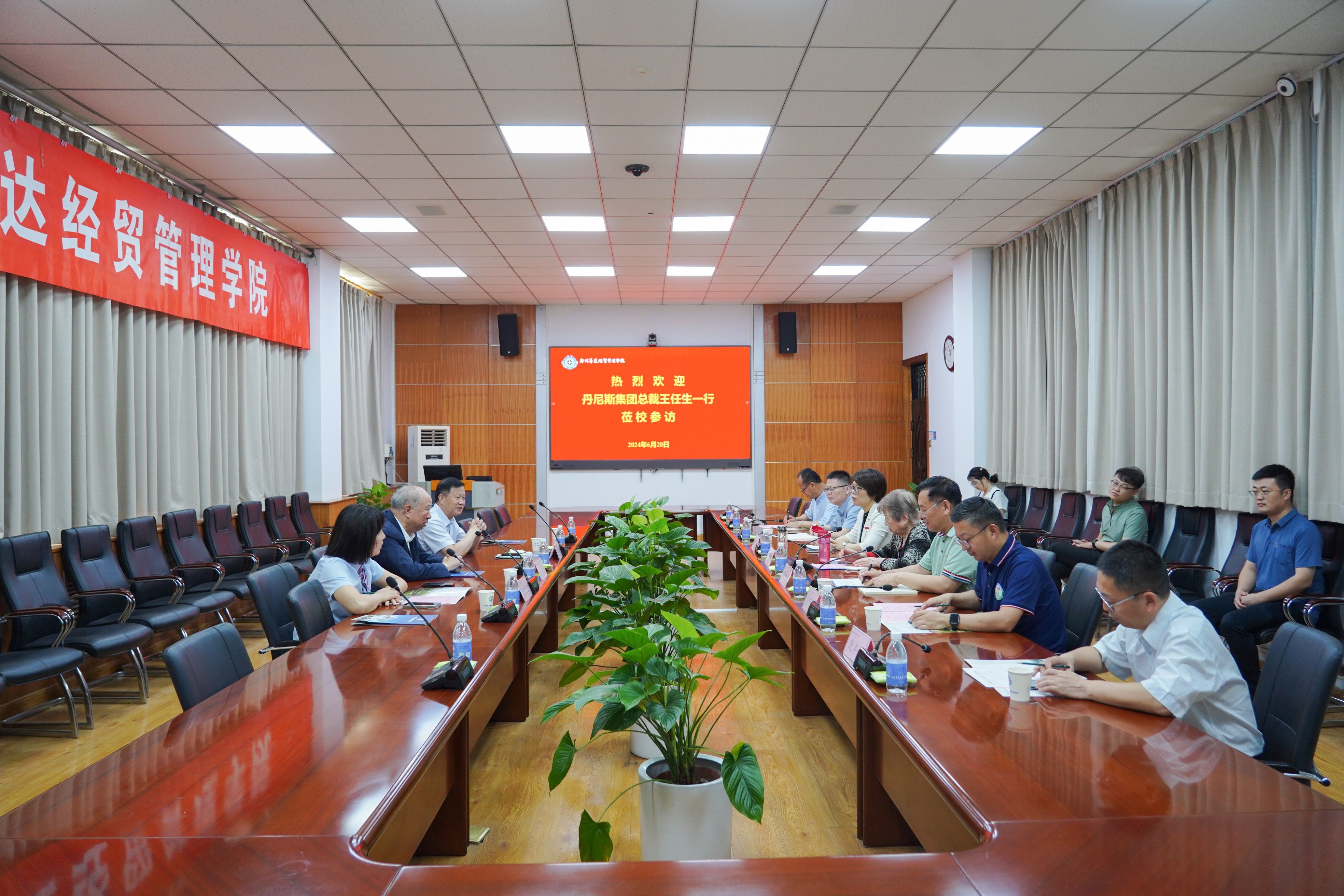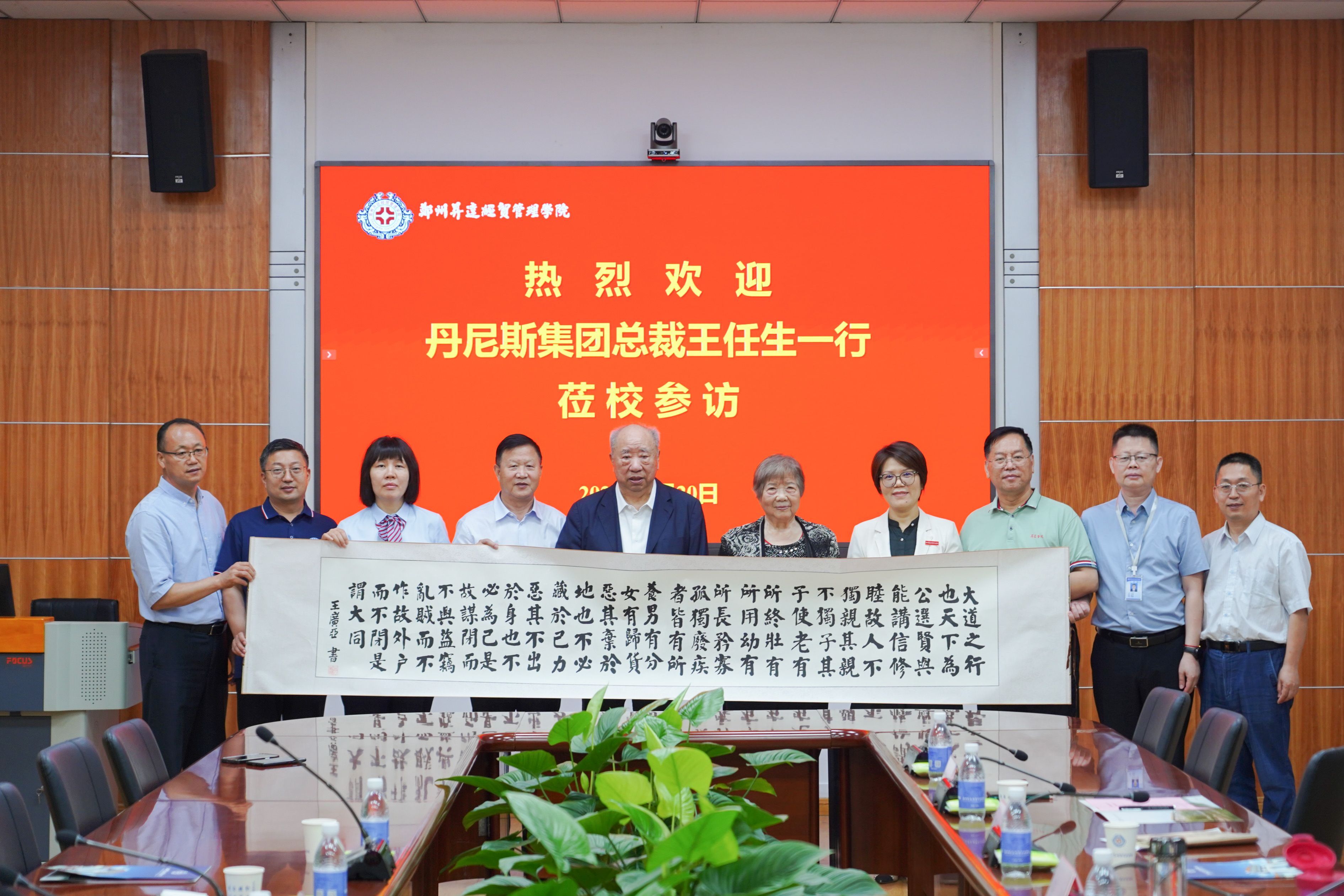 6月20日上午,丹尼斯集团总裁王任生、总经理王磊、副总经理杨艳丽一行访问郑州升达经贸管理学院,该校校荣誉董事长王淑芳、校长张欣、副校长张金安、副校长张其武和相关部门主管与王任生一行进行座谈交流,座谈会由张金安主持。