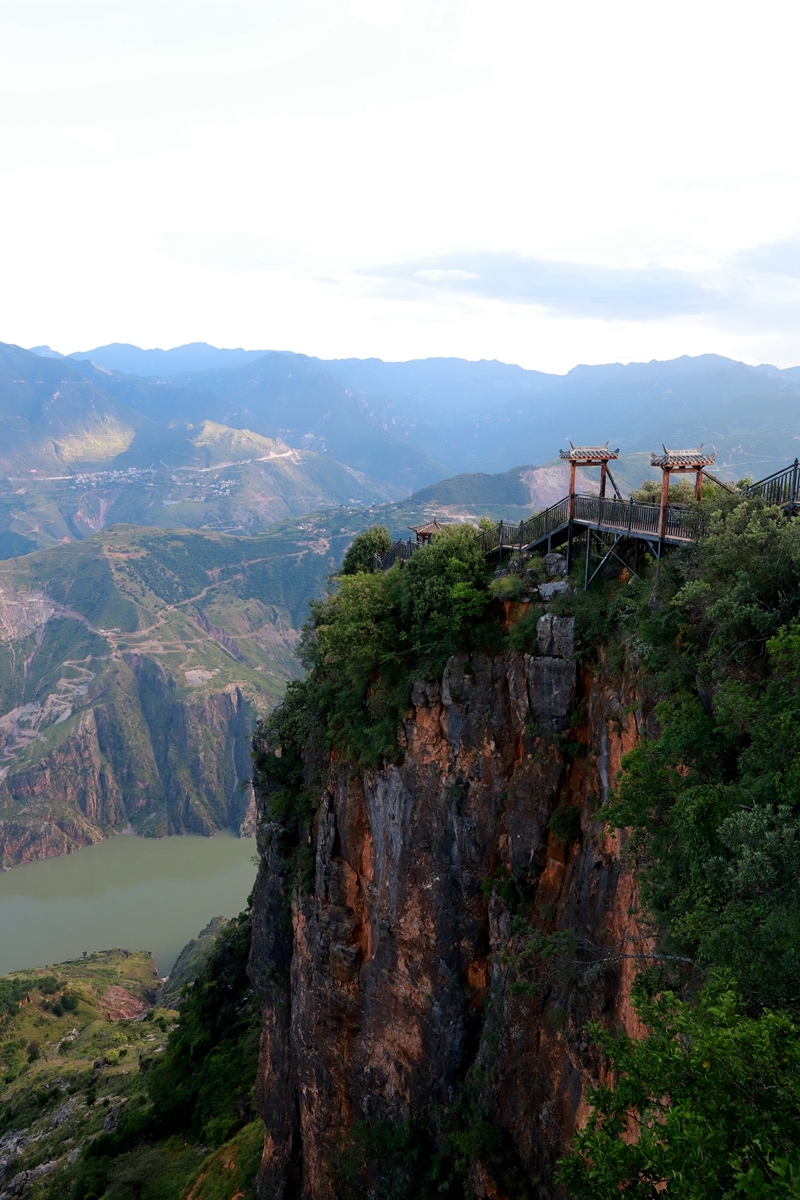 此时,伫立山边,山峦俊秀,历经风霜雨雪剥蚀后的山川怪石嶙峋,危崖耸立,如斧削刀凿;仰望苍穹,天空湛蓝,万里无云,如同明镜一般,洁净心灵;漫步栈道,路随山转,景随路移,让人无不感受到险峻之气;凭栏望远,金沙江对岸山势起伏,连绵不断,一山更比一山绝;登高俯视,峡谷笔直,金沙江在逶迤的峡谷间波光粼粼,好似乘山水而行;穿梭林间,树木葱郁,鸟语花香,深吸一口大自然的“气息”,清新畅快……