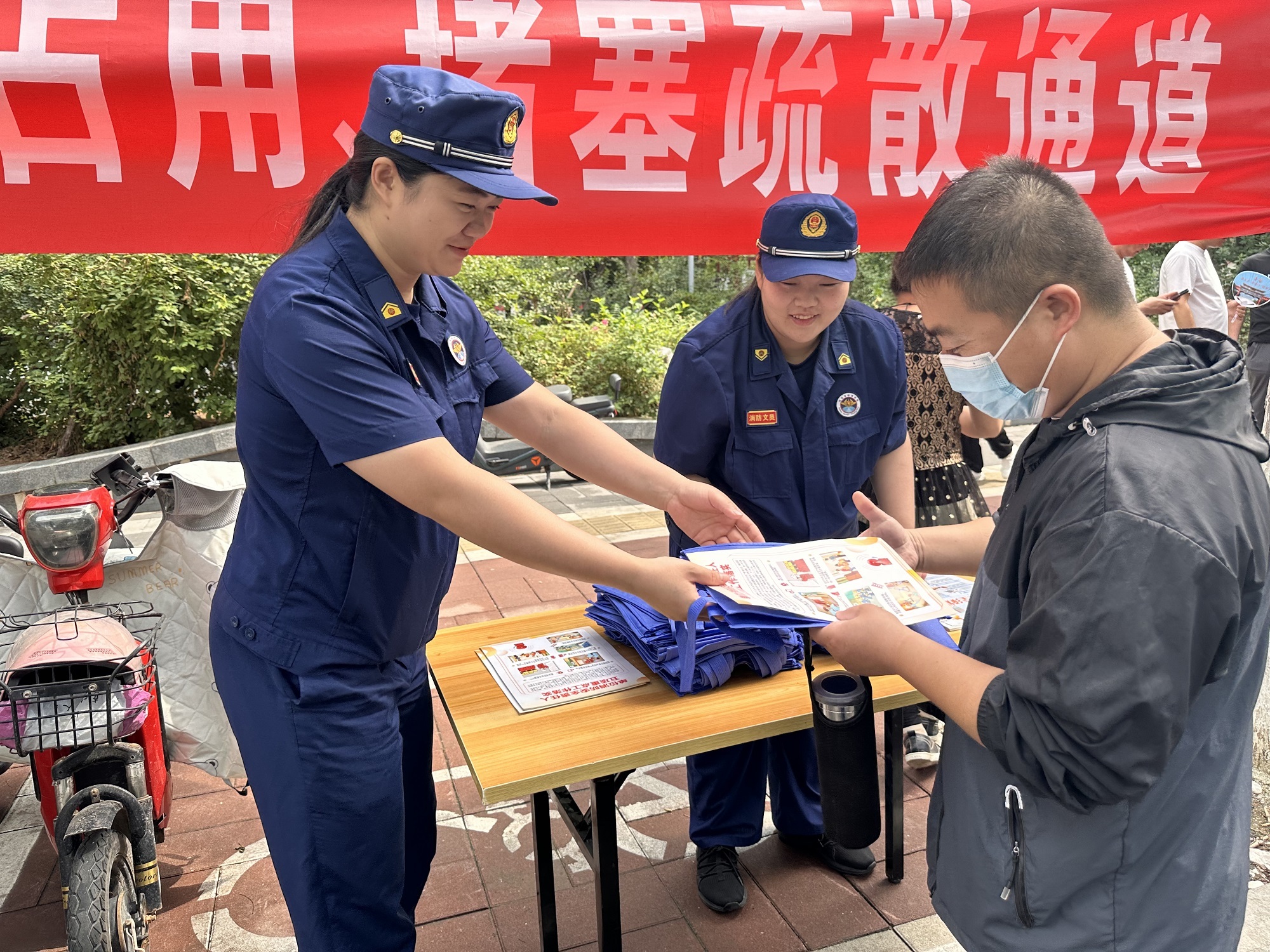 答疑解惑暖民心,摆摊设点讲消防。利用集中宣传活动,组织消防宣传员通过图片展览、设立消防咨询台、消防器材装备演示、逃生体验等形式开展集中宣传活动,向过往群众及沿街商铺发放各类宣传资料,面对面解答群众疑惑、讲解身边安全隐患,帮助群众牢固树立“人人讲安全”的意识,以新颖的方式营造浓厚的消防安全氛围。