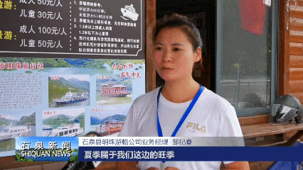 石泉县明珠游船公司业务经理 邹纪春:夏季属于我们这边的旺季,我们公司的话,平均每天接待人流量大概就在两三百人左右,然后周末的话人流量会更大一些。