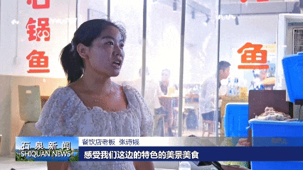 夜幕降临,汉江石泉古城逐渐热闹起来,民俗展演、汉服快闪、县令巡游等特色文化活动常态化上演,吸引着八方游客前来打卡,而最吸引游客的还是特色美食。每天晚上,汉江石泉古城和文化路特色美食街区,石锅鱼、烤鱼、烧烤、麻辣烫、火锅等美食飘散着诱人的香味,餐馆家家顾客盈门。