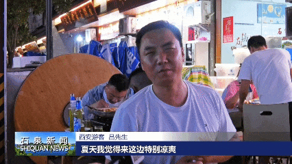 西安游客 吕先生:夏天我觉得来这边特别凉爽,这个氛围挺好的,吃个石锅鱼,喝个小啤酒很惬意,去古城挺有意思的,夜景也非常美,我已经来过三次了。