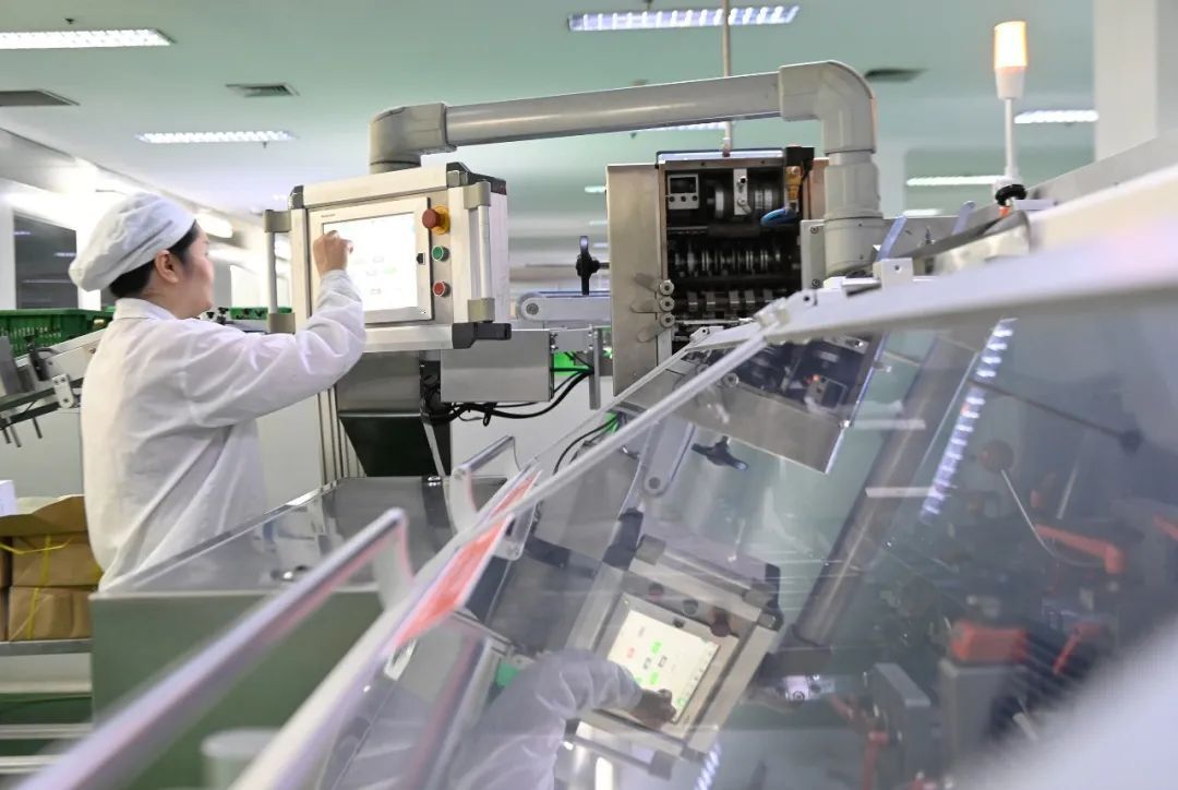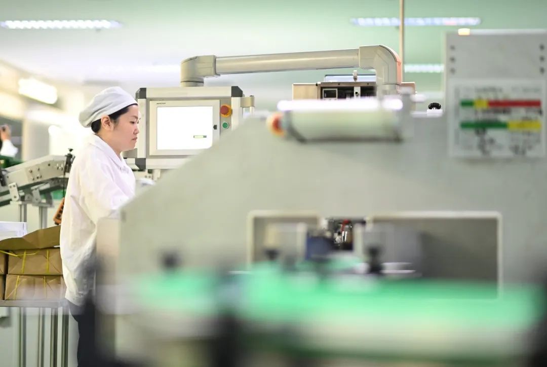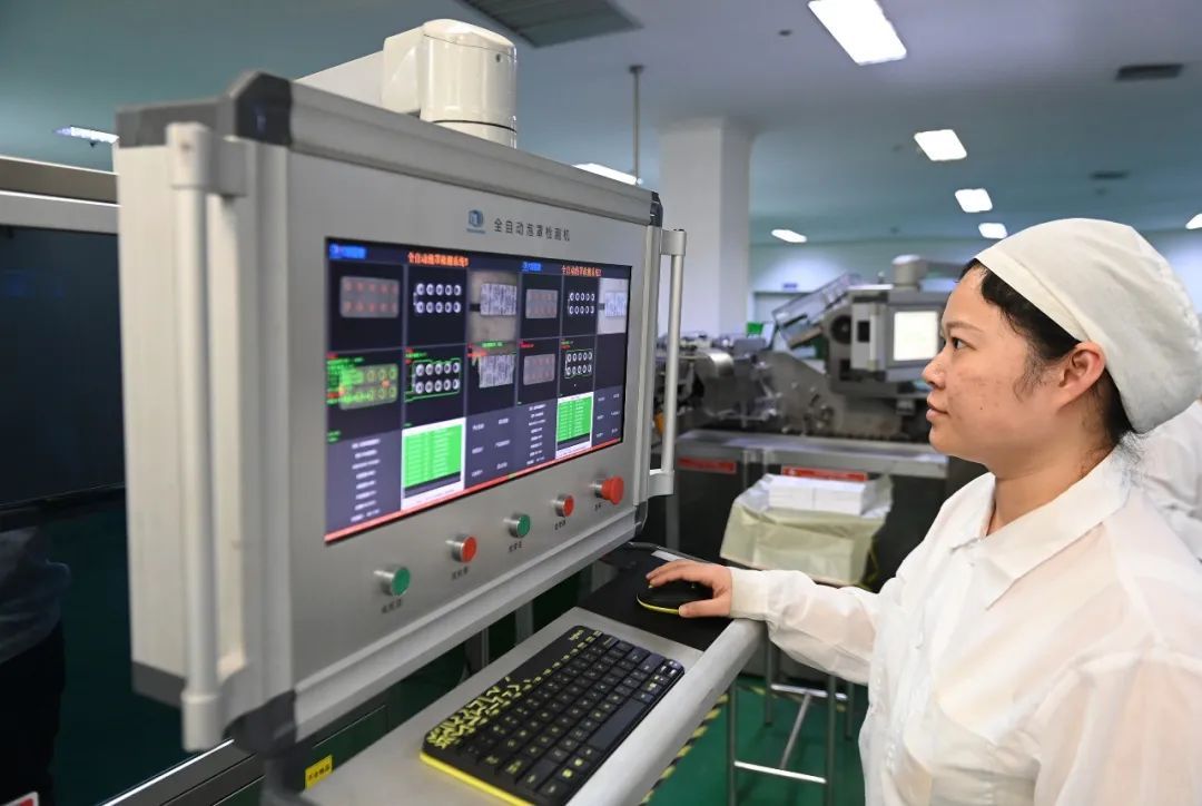 6月20日,国药太极西南药业股份有限公司口服固体制剂车间外包装区,工作人员操作智能化自动药品包装设备。孙凯芳/摄