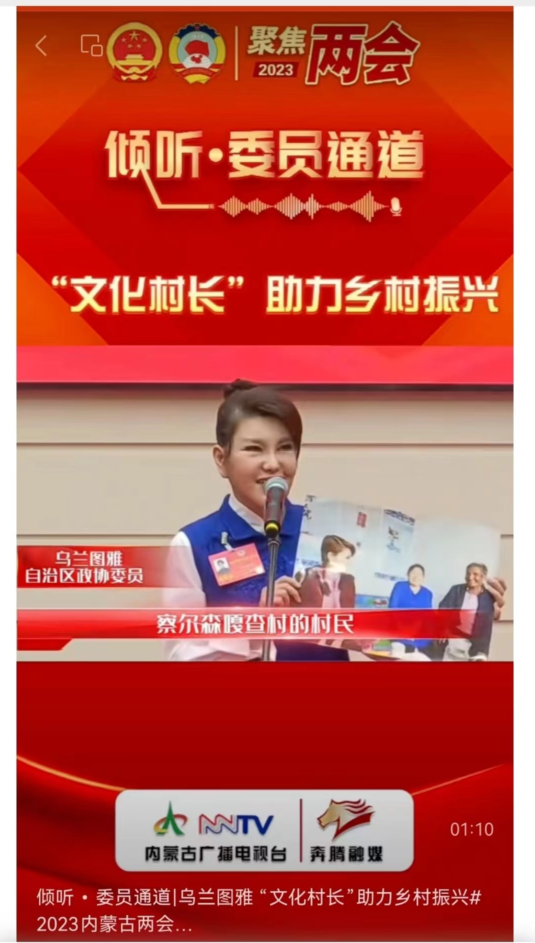 乌兰图雅在内蒙古两会宣传中讲述“文化村长”赋能乡村振兴故事