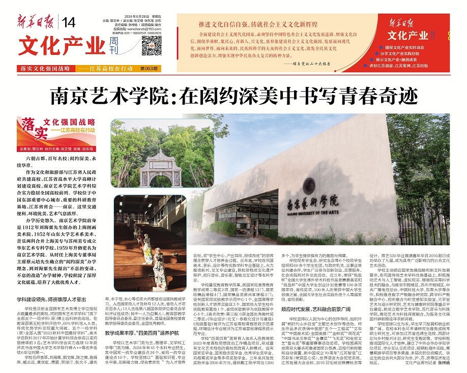 新华日报文化产业周刊推出《落实强国文化战略,江苏高校在行动》特别报道,展现江苏高校在文化强国战略引领下,不断增强价值引导力、文化凝聚力、精神推动力的生动实践。