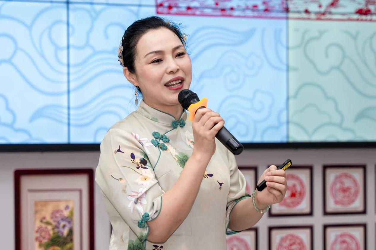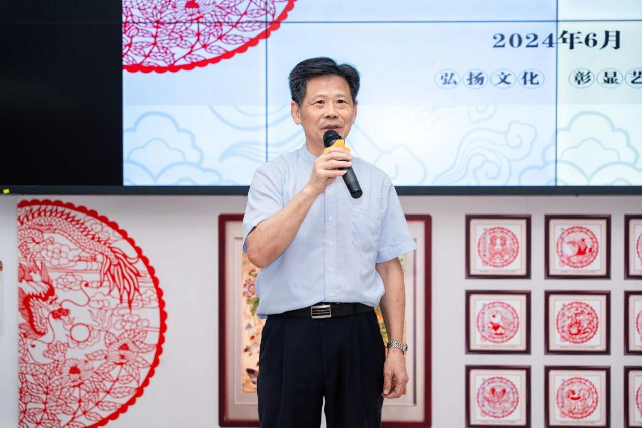 杨群祥执行董事致欢迎辞,他高度赞扬了饶宝莲大师在剪纸艺术领域的卓越成就,并表示饶宝莲大师身上有三点特质非常值得全体师生学习:一是对中国优秀传统文化的敬重与传承;二是精益求精、追求卓越的工匠精神;三是对中国优秀传统文化的守正创新。