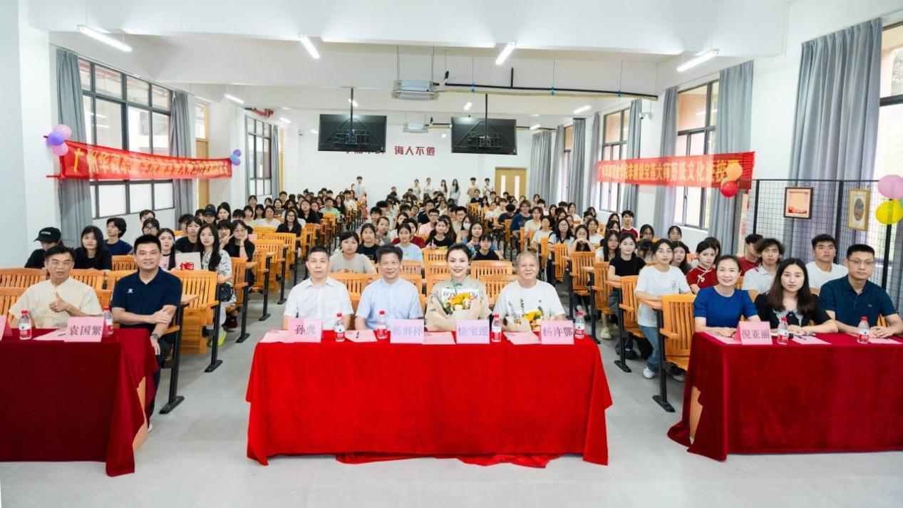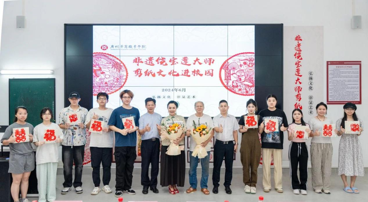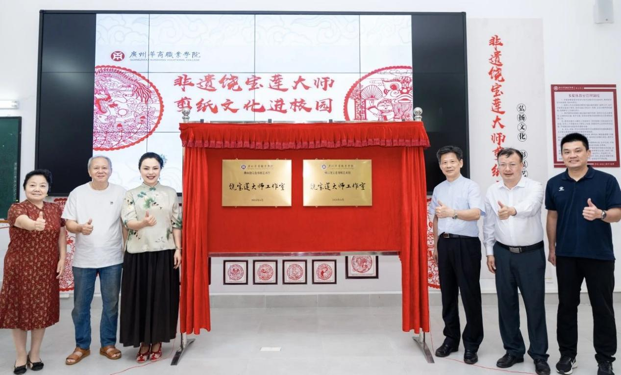 6月26日下午,广州华商职业学院特邀国家级非物质文化遗产项目(广东剪纸)省级代表传承人饶宝莲大师,在江门校区“一站式”学生社区开展了一场意义非凡的活动---饶宝莲大师工作室揭牌仪式暨剪纸文化进校园专题活动。此次活动旨在加深学生对非遗文化的理解和认识,激发其传承精神,增强其文化自信,让非遗文化在校园“护”得好,“活”起来,“传”下去,使学生在社区成为名副其实的文化传承者、创新者。