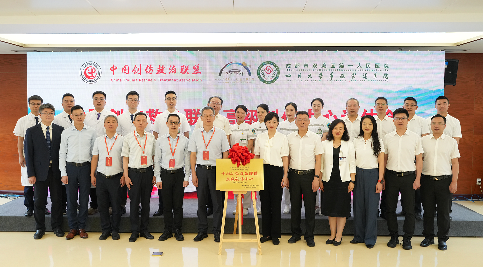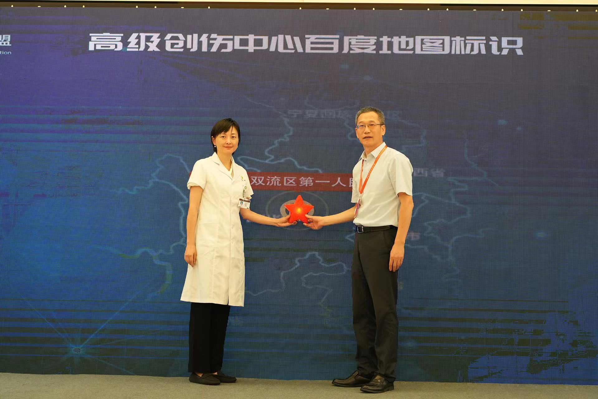 6月29日,成都市双流区第一人民医院(四川大学华西空港医院)顺利通过中国创伤救治联盟专家组评审,成为中国西南地区区县级医疗机构首家获评“中国创伤救治联盟高级创伤中心”的单位,正式迈入创伤救治“国家队”。当天,医院党委书记万美华与专家组组长张进军共同揭牌,并在百度地图上点亮了“生命之星”标识,方便群众快速了解前往路线,为急诊急救按下了“加速键”。