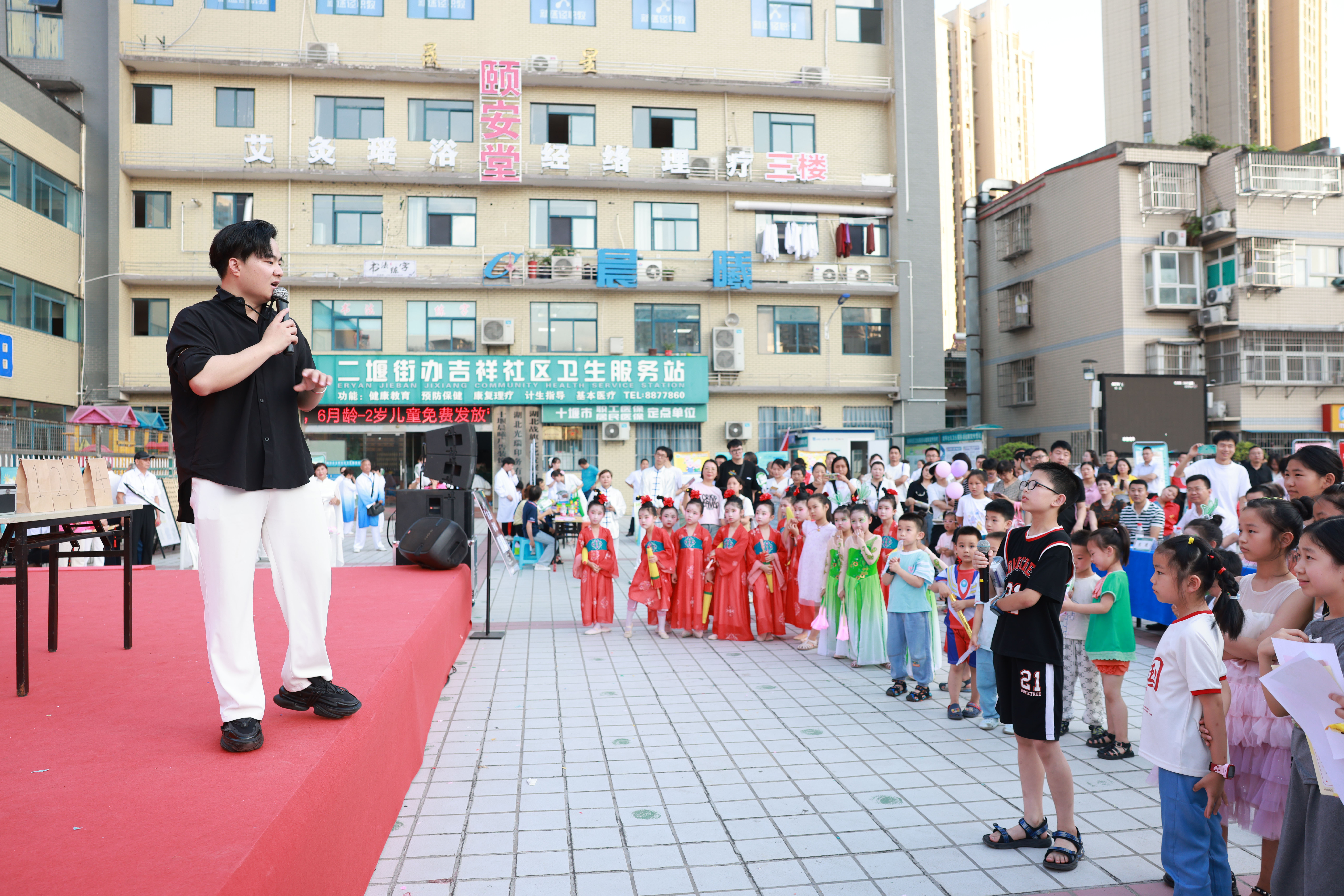 开幕式上,参展单位精彩纷呈的演出为小区带来了欢乐气氛。魔术表演《奇迹时刻》嗨翻全场,湖北医药学院教师旗袍走秀《禅花》唯美曼妙,湖北医药学院退休教师表演的乐器二重奏《十送红军》激昂悠扬,卡酷幼儿园小朋友表演的舞蹈《茉莉花》《惊鸿之舞》呆萌可爱,十堰市中医医院表演的《中医谣》让观众领略神奇的中医文化,十堰市慈善总会幸福家园志愿服务队表演了舞蹈《鼓舞》和歌曲《大海啊,故乡》。吉祥社区居民自发表演武术《武当太极》,行云流水中尽显太极功夫,社区居民广场舞队表演了《歌唱祖国》旗子舞。节目中间穿插健康知识有奖问答,寓教于乐中传播保护眼睛、控制血压血糖等健康小知识。