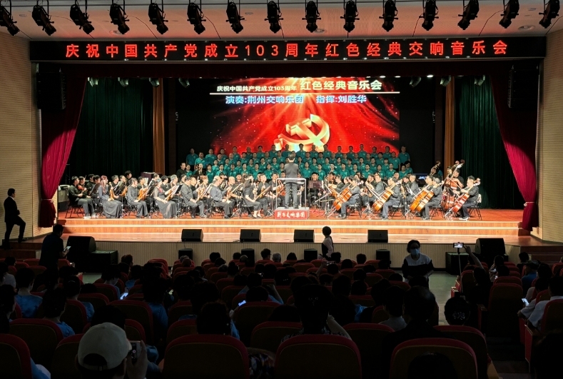 初心如磐,使命在肩。在中国共产党成立 103 周年之际,6月28日晚,荆州市总工会在工人文化宫举办庆祝中国共产党成立 103 周年红色经典音乐会暨荆州交响乐团开放排练公益音乐会,以文艺形式弘扬伟大建党精神,向党献上最深情的祝福。