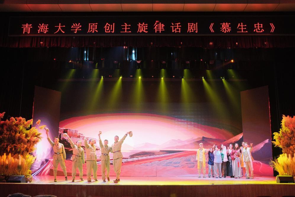 青海大学原创红色话剧《慕生忠》在科技馆大礼堂上演,全校600余名入党积极分子和师生党员代表观看了话剧。话剧生动形象地再现了慕生忠将军和他带领的筑路大军不畏艰难、不惧险阻、不怕牺牲,在“世界屋脊”修筑完成青藏公路的艰辛历程。通过话剧表演,引领广大师生党员追昔抚今,传承开路精神,不忘初心,勇往直前。