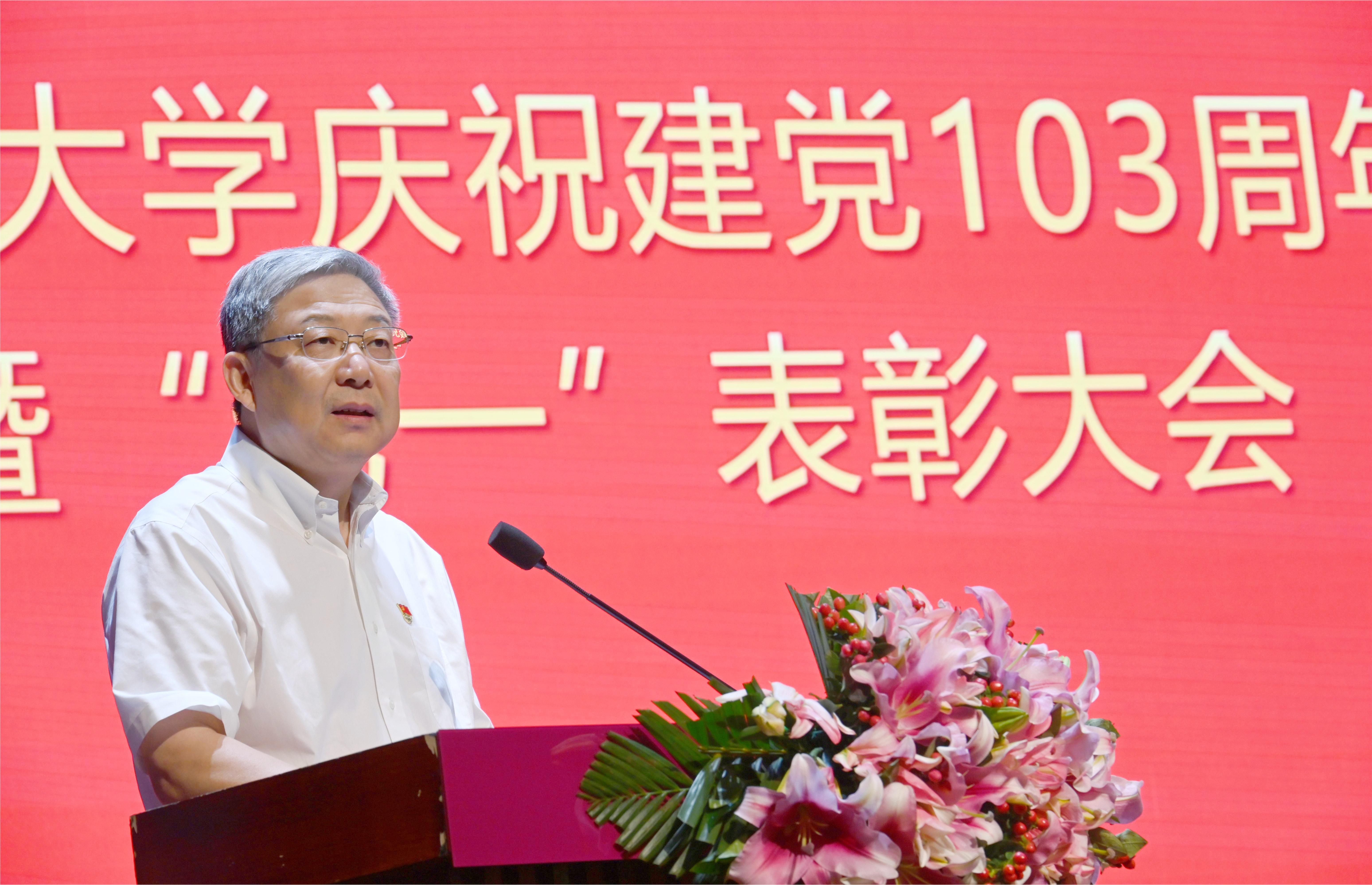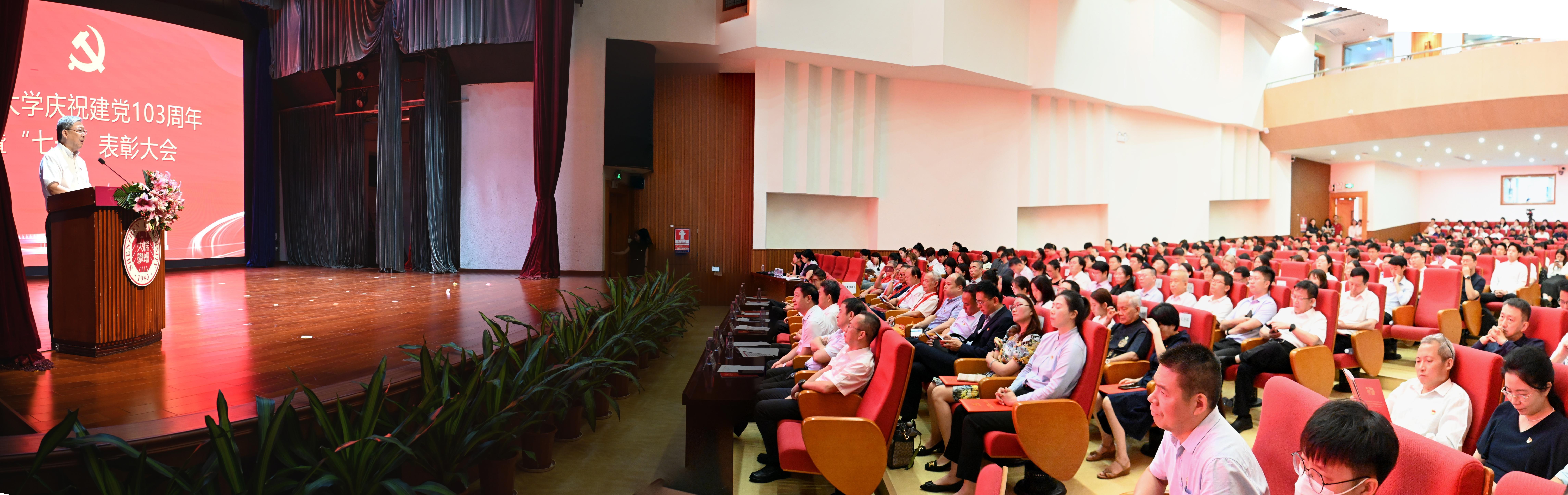 7月1日下午,深圳大学庆祝中国共产党成立103周年暨“两优一先”表彰大会在国际会议厅召开。
