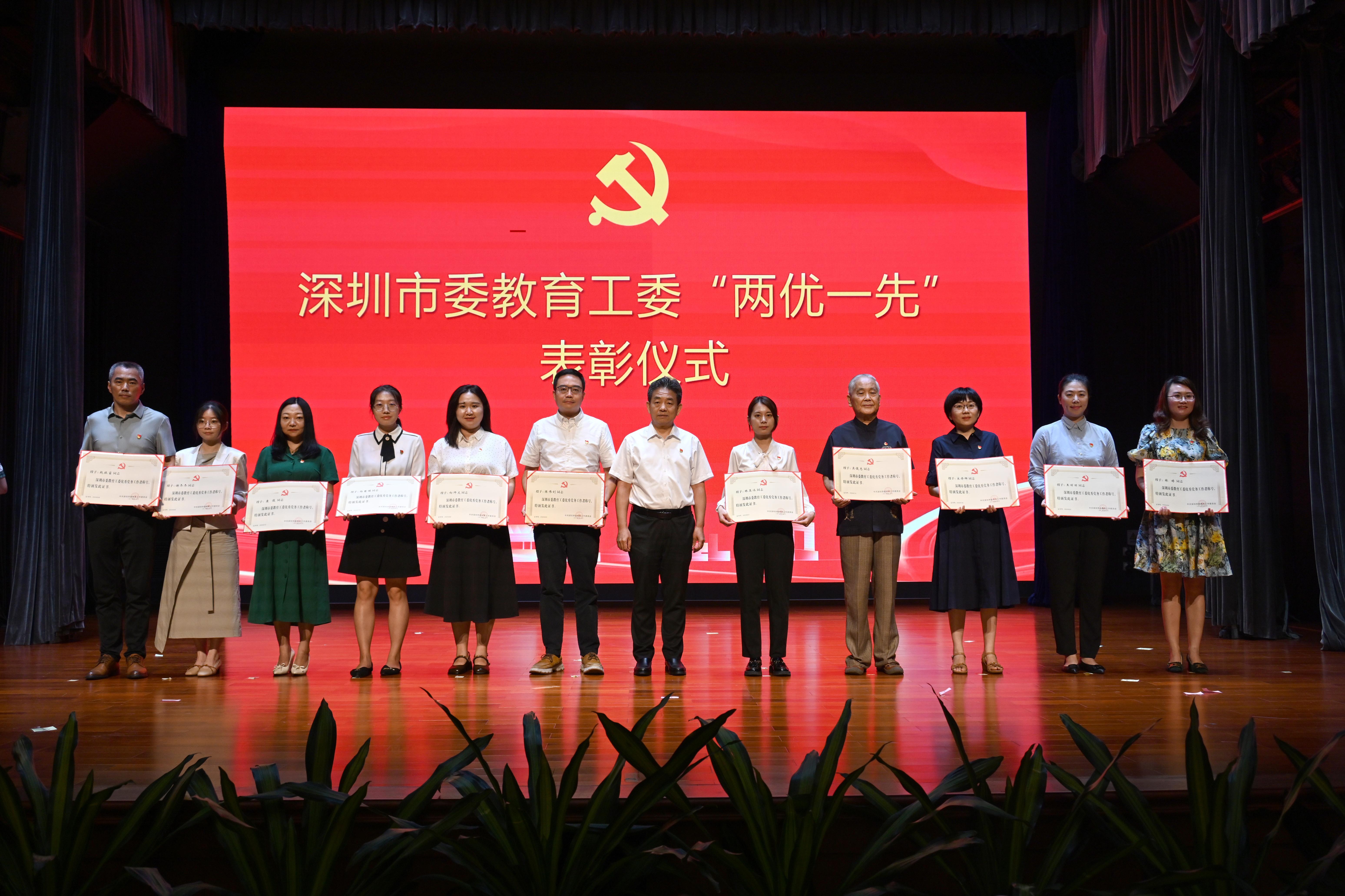 近年来,学校紧紧围绕立德树人根本任务,坚守为党育人、为国育才的初心使命,在各自的岗位上辛勤耕耘,在推动学校高质量发展中涌现出一大批优秀共产党员、优秀党务工作者和先进基层党组织。为表彰先进,学校党委授予陈丽文等200名同志“优秀共产党员”称号;授予汪渝等80名同志“优秀党务工作者”称号;授予中共深圳大学医学部生物医学工程学院教工一支部委员会等40个党组织“先进基层党组织”称号。本年度深圳大学获市委教育工委“两优一先”表彰共62名,其中“优秀共产党员”共25名、“优秀党务工作者”共26名、“先进基层党组织”共11个。在深圳市“两优一先”表彰公示名单中,深圳大学土木与交通工程学院周海俊获评深圳市“优秀共产党员”,传播学院黄玉波获评深圳市“优秀党务工作者”,中共深圳大学计算机与软件学院委员会获评深圳市“先进基层党组织”。
