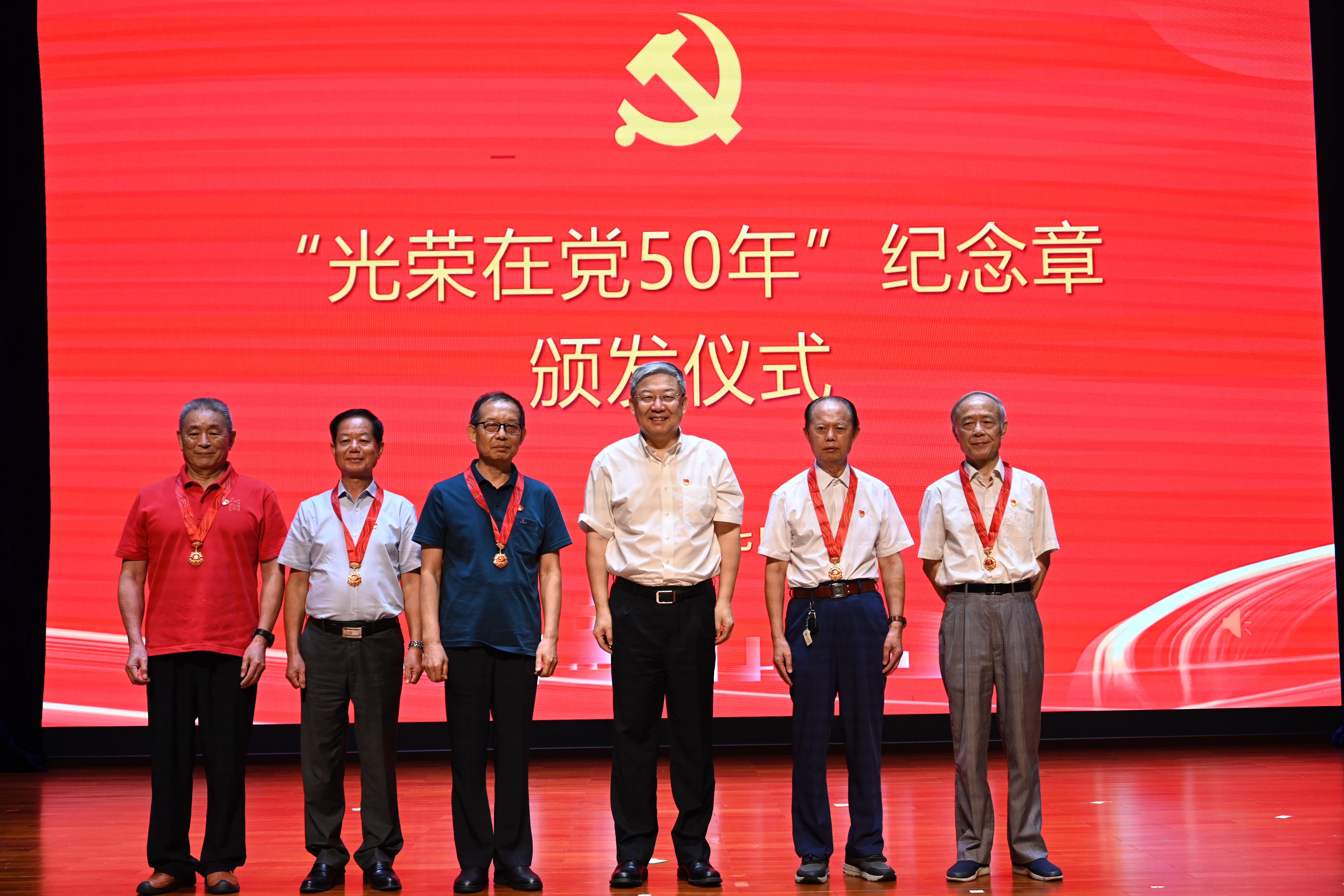 “光荣在党50年”纪念章获得者代表宋为民在发言中表示,这枚纪念章是对老党员半个世纪来坚守信仰、不懈奋斗、努力为人民服务的肯定、褒奖、鞭策和激励。在党五十年来,坚定的信仰引领党员们在特区建设、改革大潮中矢志不渝,在参与并见证伟大的时代变迁、为人民服务中实现价值。建校41年来,一批批共产党员在深大的建设、发展工作中发挥了先锋模范作用。当前,深圳大学肩负新的历史使命,老党员们将始终如一,做到“工作岗位退,为人民服务的初心不减退”,发挥余热,以经验智慧助力青年党员成长。