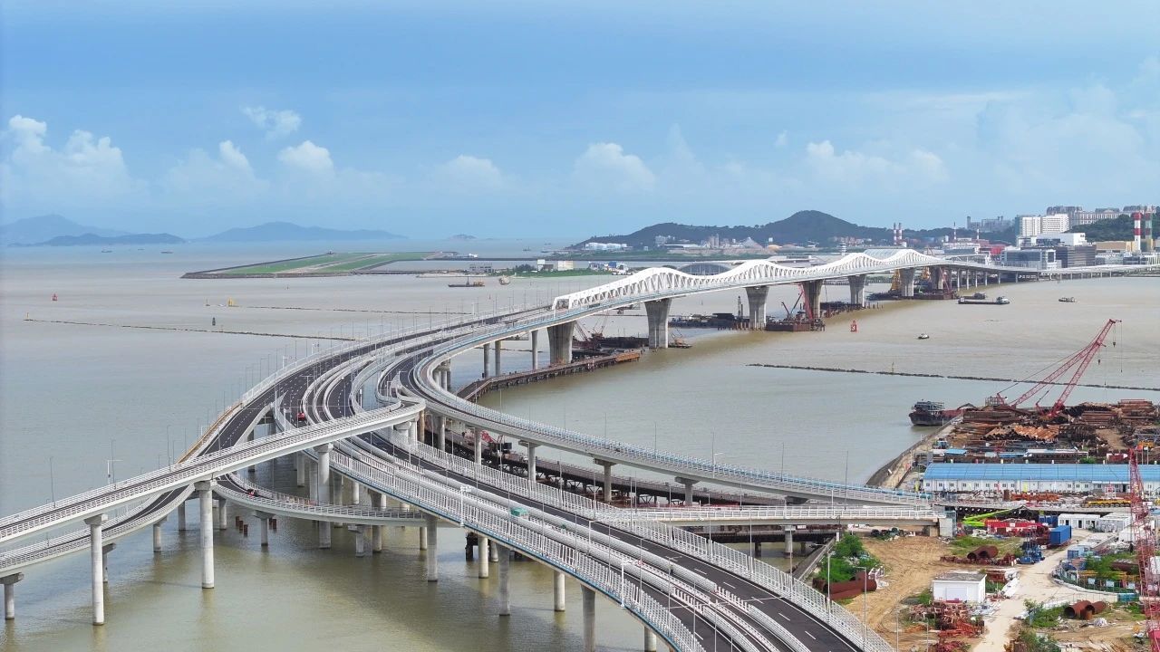 澳门大桥位于澳门友谊大桥东侧,横跨外港航道和澳门水道,连接新城填海A区、填海E区以及港珠澳大桥人工岛口岸区,是构建澳门城市交通体系的关键节点。大桥主线全长3.085公里,其中跨海段长约2.86公里,主桥长1370米,以双向八车道城市快速路标准开展建设,是澳门首条双向八车道跨海大桥。