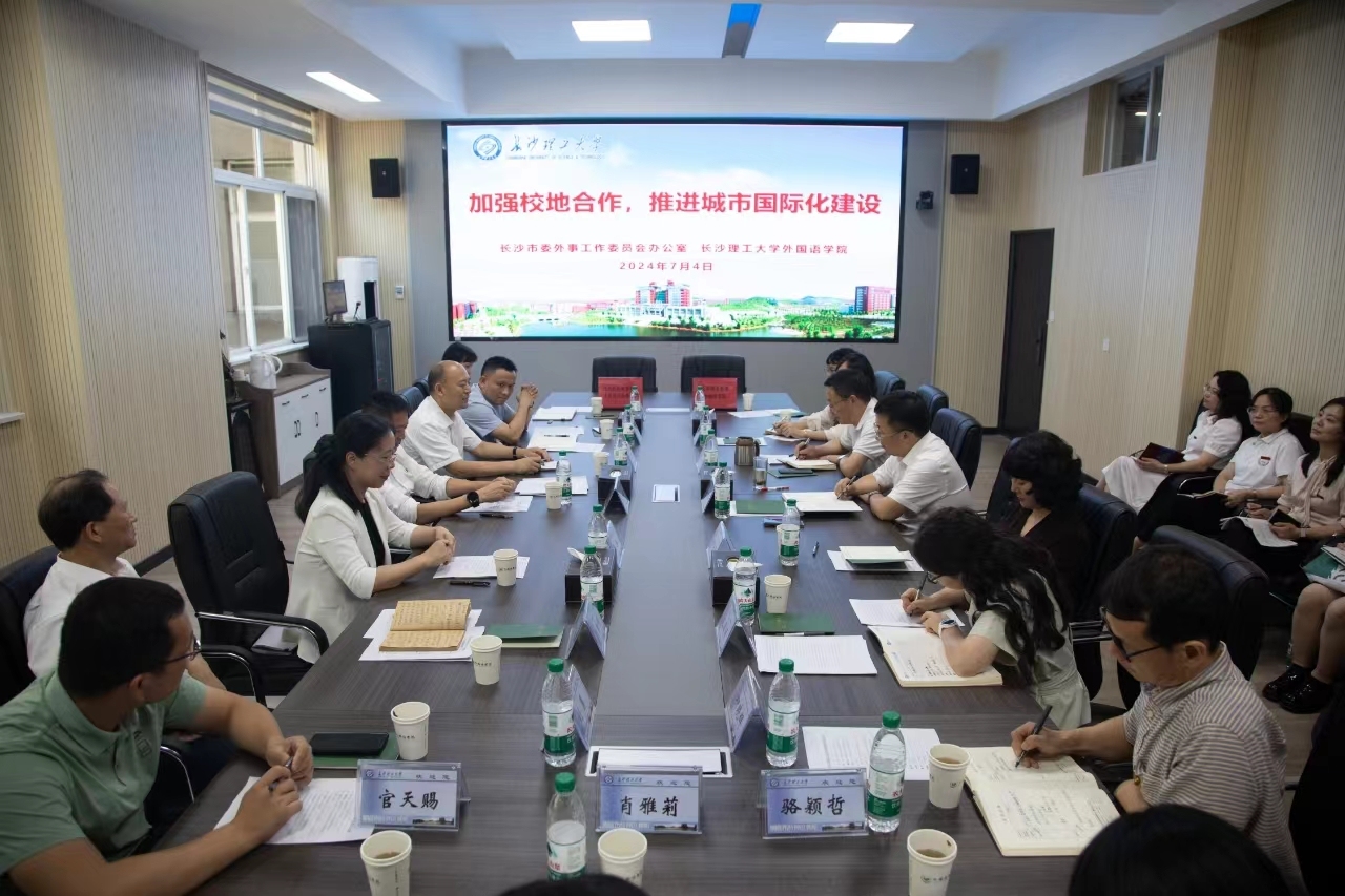 7月4日,长沙市人民政府副市长高文棋带队到长沙理工大学调研并召开座谈会,长沙理工大学副校长张军辉出席。长沙市委外事工作委员会,长沙理工大学对外合作与交流处、外国语学院相关负责人陪同调研。