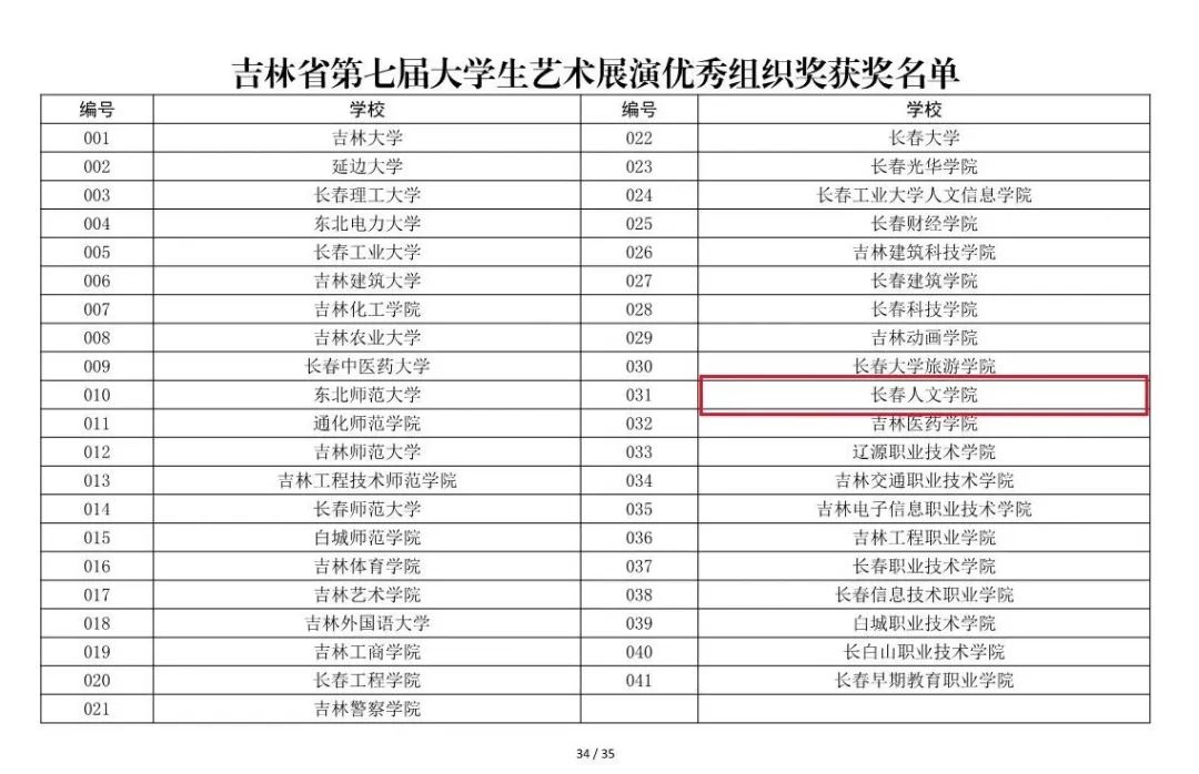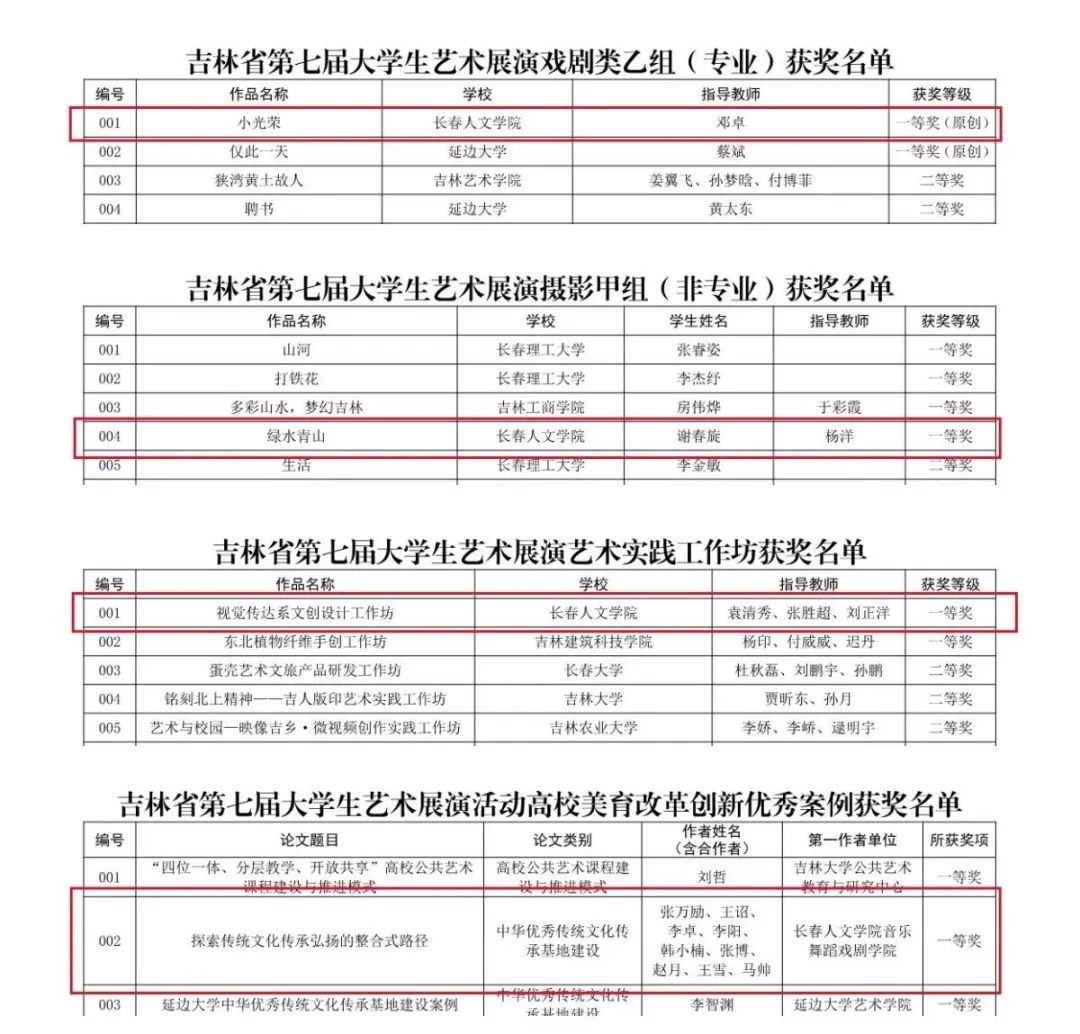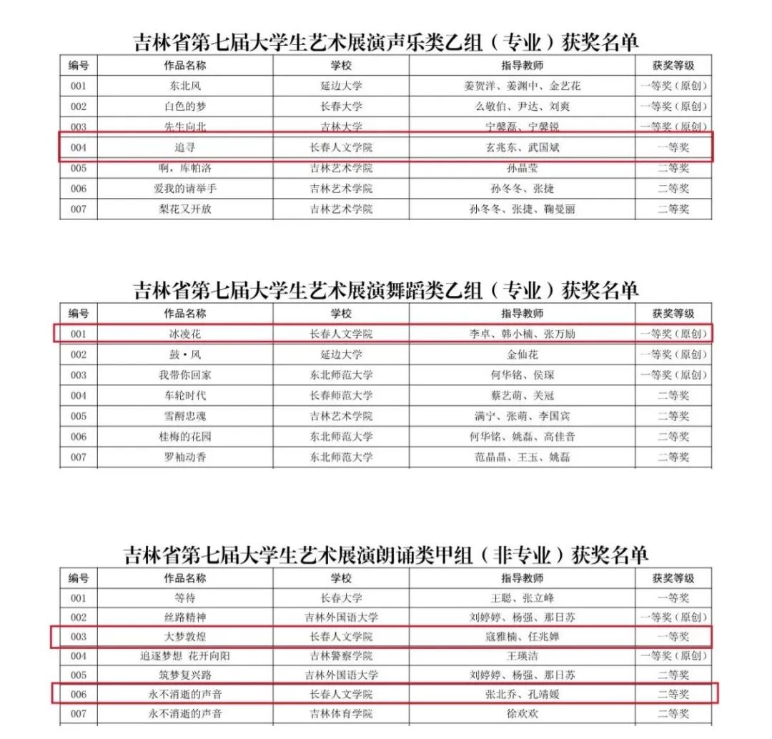 7月上旬,吉林省教育厅公布《吉林省第七届大学生艺术展演获奖名单》,我校喜获30个奖项。其中一等奖7项、二等奖3项、三等奖17项,“校长杯”书画摄影作品奖2项,学校荣获“优秀组织奖”。