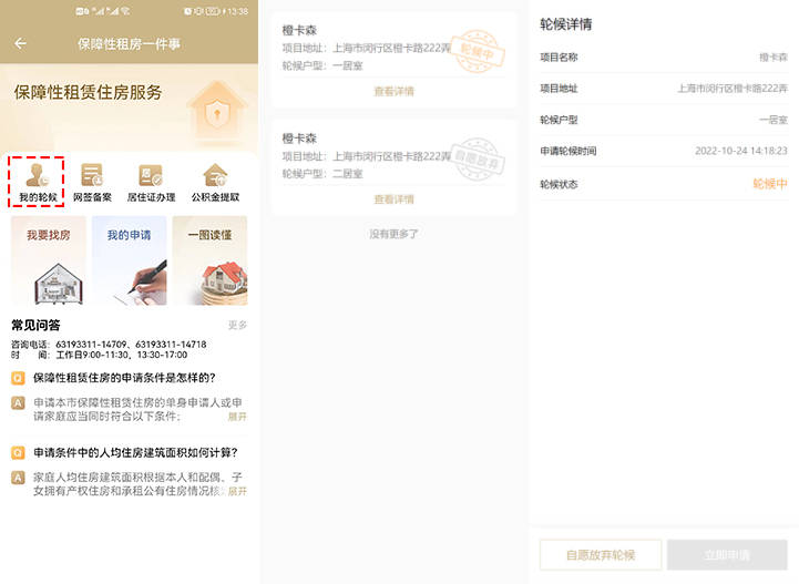 轮候申请成功后,可在“我的轮候”中查看轮候情况,市民还可结合实际需求选择“自愿放弃轮候”。