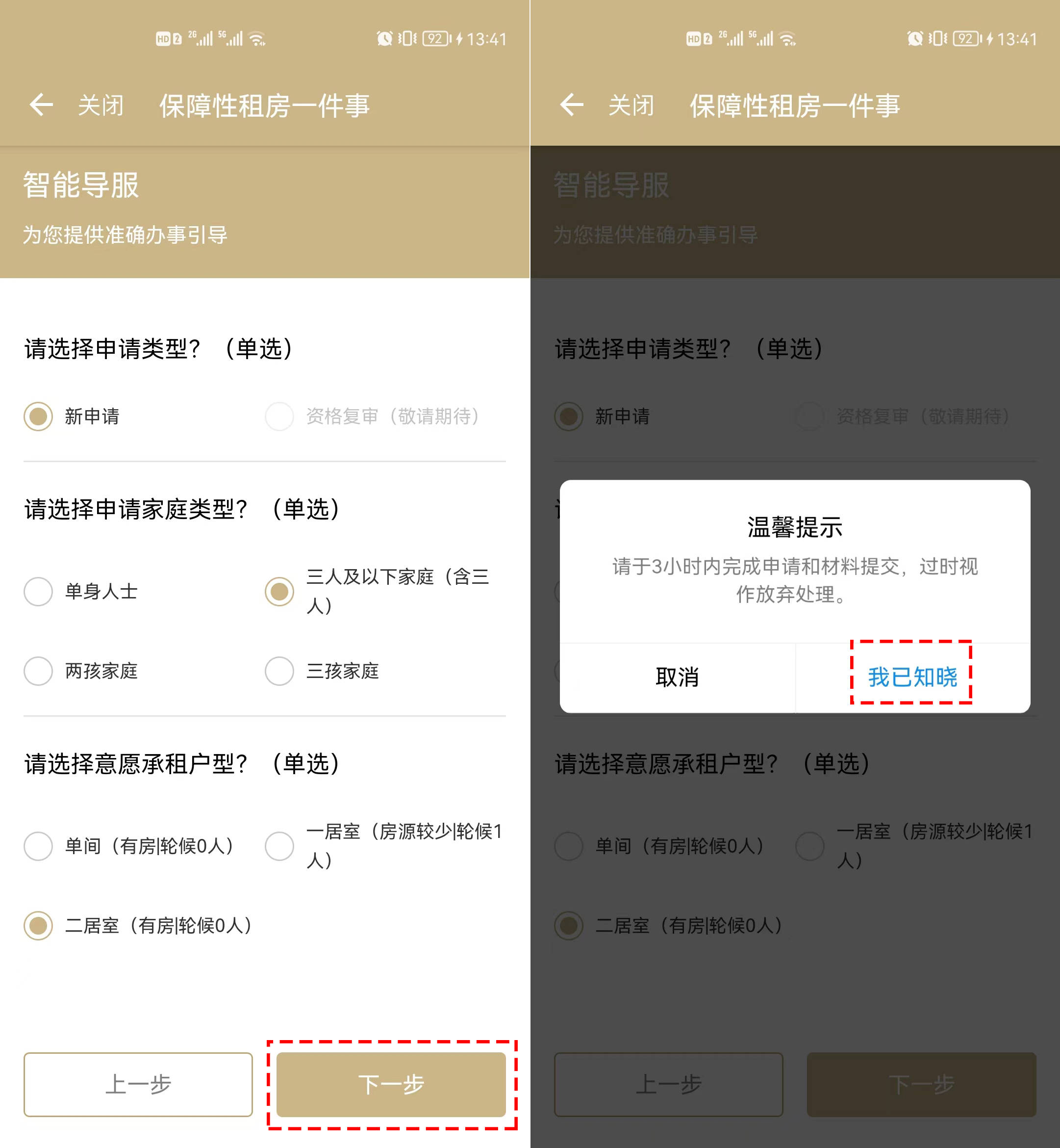 注:需要在3个小时内完成申请和材料提交(逾时视为放弃)