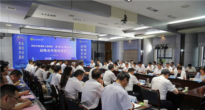 阳光讯(记者 郑亚雷)为进一步加强校地合作,促进政产学研用深度融合,加快培育和发展新质生产力,7月10日下午,西安科技大学与临潼区人民政府战略合作框架协议签订仪式在西安科技大学临潼校区骊山校园举行。临潼区委书记黄可、临潼区人民政府区长苗吉、临潼区委副书记侯兵利、临潼区副区长霍炳男,西安科技大学党委书记来兴平、校长邓军及全体校领导出席签约仪式。西安科技大学副校长张传伟主持会议。