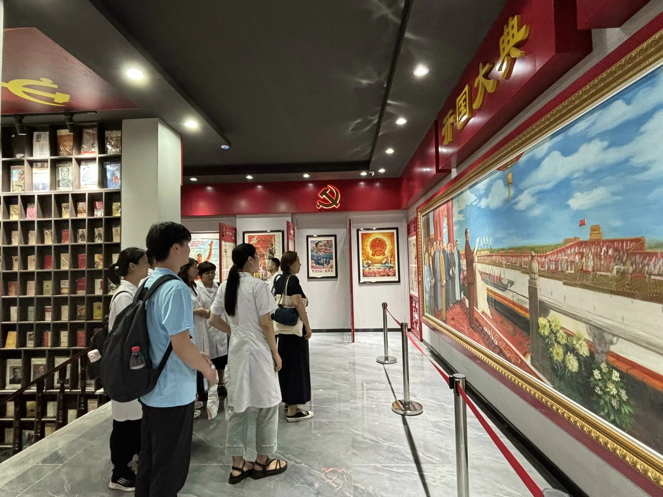 “这是1949年10月1日至今,每年国庆节当天的《人民日报》头版,一张不少!”在长垣市李寨村红色记忆馆的人民日报展厅,随着工作人员的介绍,“弘扬伟大建党精神,担当健康中国先锋”实践团不禁把目光锁定在墙上的报纸,他们认真地端详一张张记载着共和国“历史”的人民日报感慨不已。此外,党史专题展厅、毛主席纪念馆、红色书籍画报展厅等也给实践团留下了深刻的印象。