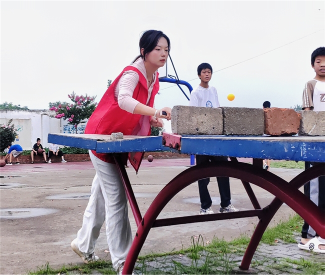 (图为志愿者带孩子们打乒乓球,通讯员柳林摄)