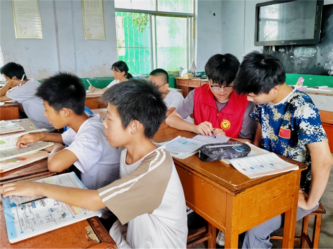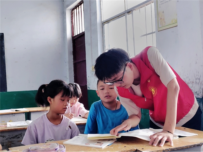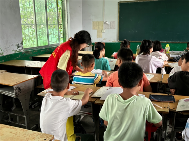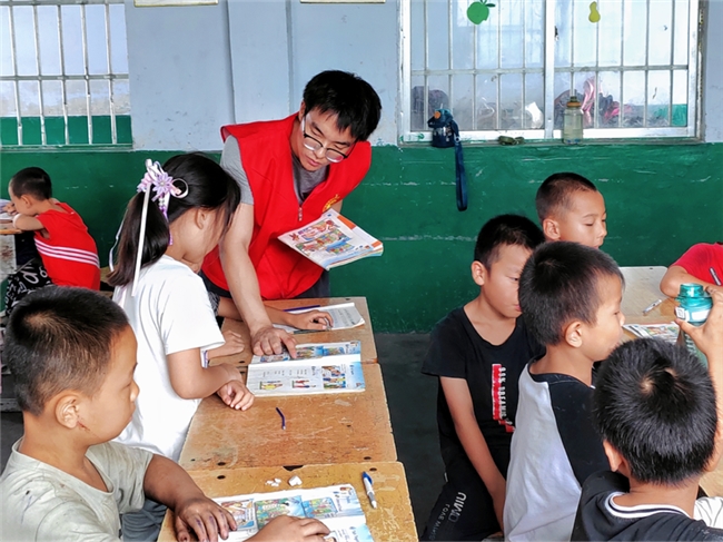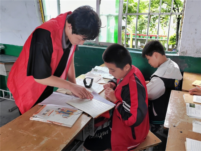 (图为志愿者为孩子们答疑解惑,通讯员杨玉茹摄)