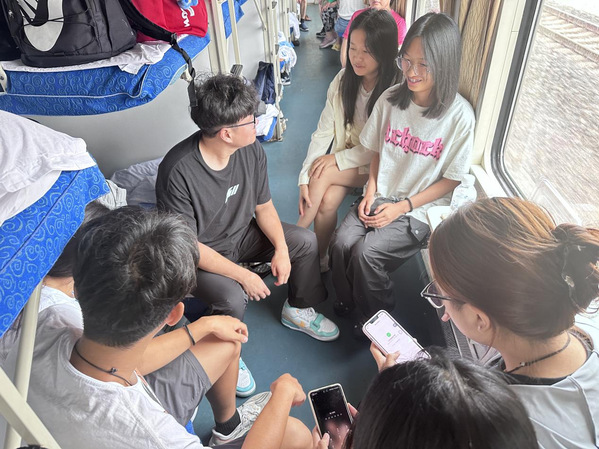 京途领航队11名成员乘坐绿皮火车,历时14个小时,跨越755公里,于7月13日中午1点抵达北京站。小分队成员纷纷表示,内心非常激动,很期待这次生存体验。但因近日北京遭逢暴雨,他们在火车上时心情也较为忐忑,非常担心因为天气原因找不到工作。于是大家在火车上就开始行动起来,通过各种平台寻找工作渠道,认真记下每个工作的要求并且与相关负责人及时取得联系,一下火车大家就马不停蹄地奔赴各个岗位参加面试。但是由于抵达北京时间较晚,成员们没有找到合适的工作,暂时只能靠临时卖点东西赚钱。
