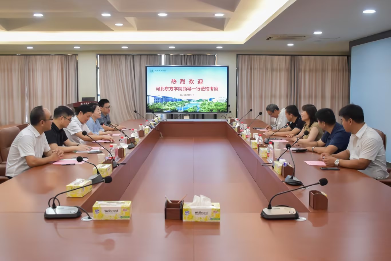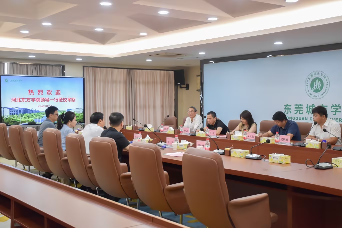 7月13日,河北东方学院校长吕一枚、文物艺术学院院长吴照魁、人工智能学院院长陈欣乐、高尔夫产业学院院长张炳麟、元宇宙研究院院长房晓溪一行来东莞城市学院交流。学校执行校长方伟华、语言文化学院名誉院长宋秋敏、创意设计学院院长何帅、人工智能学院副院长张伟明等领导接待并召开座谈会。