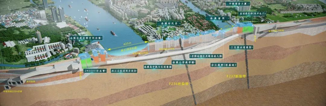 海珠湾隧道工程所处位置地表建构筑物密集、周边交通繁忙且需穿越复杂地质,包括长距离穿越泥质粉砂岩地层、两条断层破碎带隧道,最大埋深53米,建设难度大、管理要求高。