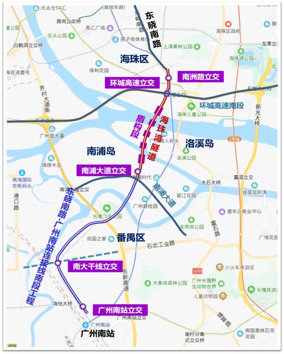目前,海珠湾隧道正在推进6座联络通道、行车道板和附属工程施工,同步加快南洲桥梁段及明挖隧道主体结构施工,全力确保项目2025年建成通车。届时,海珠、越秀等中心城区到广州南站的行程有望缩短至15分钟,可有力增强广州南站的集疏运能力,进一步释放其核心门户枢纽功能,强化广州国际综合交通枢纽地位,提高粤港澳大湾区基础设施“硬联通”水平。
