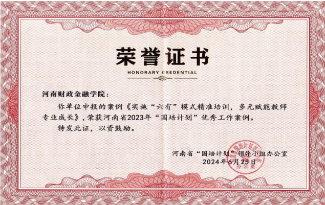 河南财政金融学院“六有”精准培训模式荣获教育厅2023年“国培计划”优秀案例
