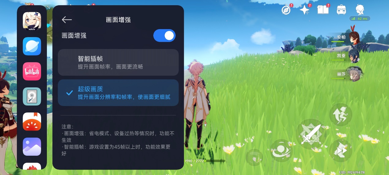 此外,在同时开启插针后,原神可以实现1.5K+120Hz满级画质。
