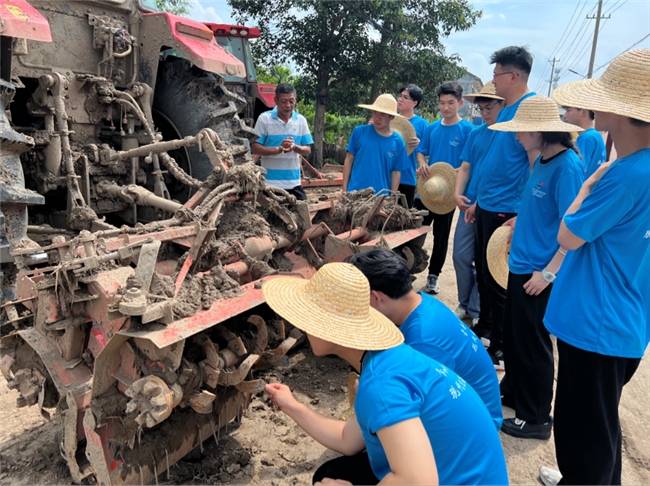 实践团成员前往湖西农场农机站,负责人不仅详细介绍了每种农机的性能参数、适用范围以及智能化系统的操作流程,还分享了在引进、应用这些技术过程中遇到的挑战及解决策略。成员结合自身专业,就农机维修保养的智能化、自动化趋势进行了热烈讨论,提出了开发智能诊断系统、建立农机健康档案、推广预防性维护等方案,通过减少农机故障率,延长使用寿命,从而进一步降低农业生产成本。最后,在负责人的指导下,学生们轮流上阵,亲手操作了最新的耙地机。成员们掌握了农机设备的基本操作技巧、拓宽了专业视野,深刻体会到了理论知识与实践操作相结合的重要性,为他们未来投身农业现代化事业奠定了坚实的基础。