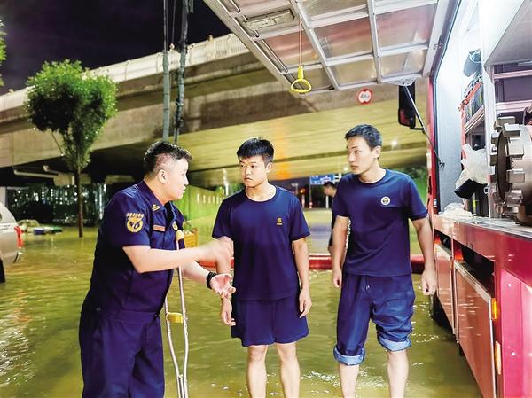 本轮强降雨对城市排水系统是个巨大的考验。作为一名优秀的消防救援指挥人员,周口市消防救援支队示范区救援大队大队长杨振凯提前预判、主动作为,不顾刚刚拆除固定腿部钢钉的疼痛,带着战友坚守在应急防汛第一线。