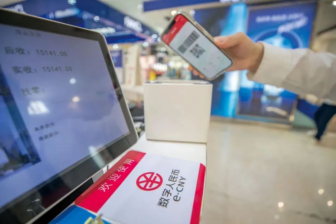 △一名消费者在百货商场收银台用数字人民币支付。