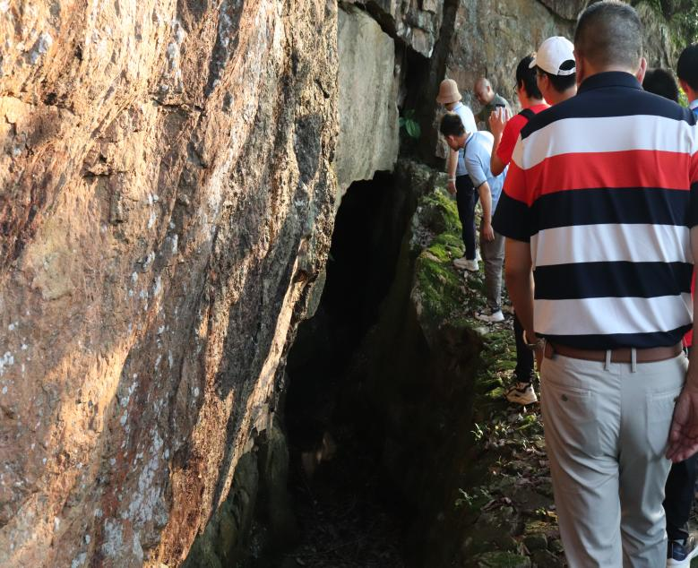 实践团成员沿着蜿蜒曲折的水渠,仔细观察着每一处细节。龙腰渠,这条全长5000余米的明渠,穿越龙腰山脊坚硬的花岗岩,将大石溪水引入霍童溪右岸,灌溉着石桥洋的千余亩良田。而琵琶洞渠系,因流水声似琵琶弹奏而得名,后因洞内蝙蝠聚集,又称“蝙蝠洞”。琵琶洞渠系总长9000余米,由明渠与7段隧洞连接而成。隧洞总长700多米,采用“火烧水激凿石工法”开凿,现存的隧洞还有5段,总长约80米,宽约1米,最高处2.5米。则以其独特的隧洞设计,将溪水引入东北过溪坂的百顷田地,形成了完备的灌溉网络,无不彰显着古人的智慧与勤劳。