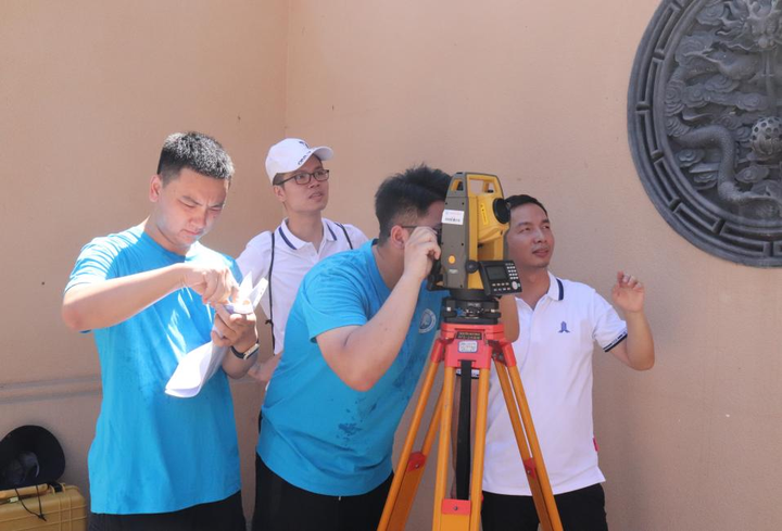 在专业老师的指导下,对神农庙进行了详尽的房屋安全状况评估,利用全站仪对房屋倾斜度测量以评估整体稳定性,采用裂缝测宽仪和声发射仪检测裂缝宽和深度以量化结构损伤程度,并通过回弹仪评估混凝土抗压强度,对神农庙的墙体、梁柱、屋顶等关键位置进行了细致入微的检测。