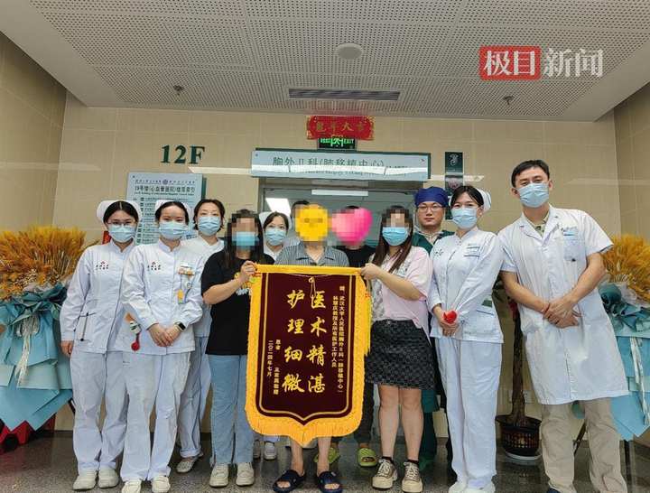 7月18日出院返粤时,周先生一家向医护人员献上锦旗,并动情地表示:“感谢武汉医务人员的全力以赴,让我自由呼吸,回归正常生活。”