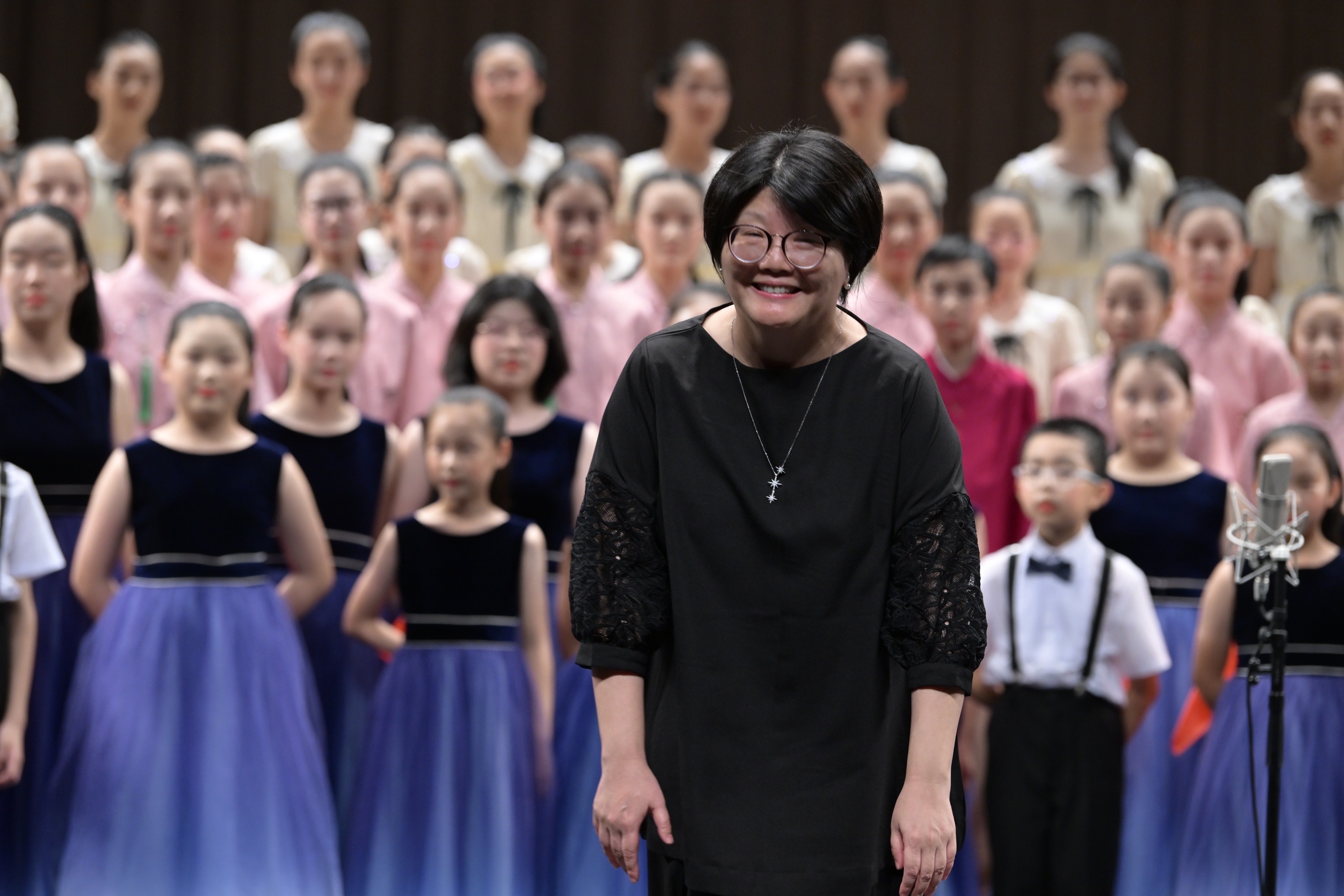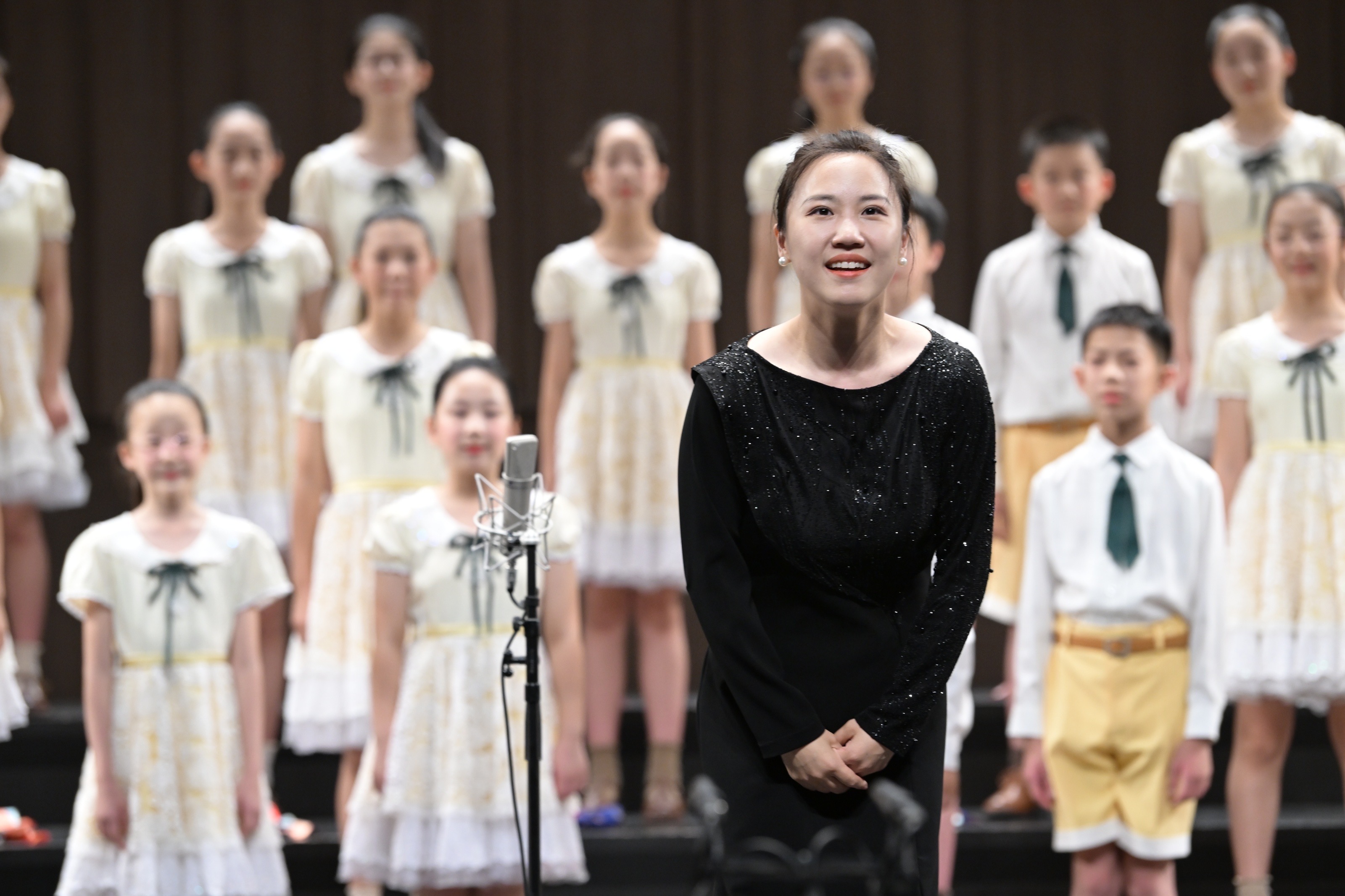 7月21日下午,展演开幕式在浙江音乐学院音乐厅盛大开启,线上多平台同步直播。领导嘉宾和专家评审们共同参与了展演的启动仪式,在现场热烈的气氛中,拉开了活动的序幕。开幕式主持人由中央广播电视总台主持人鞠萍担纲,鞠萍与在场师生共同唱响《我和我的祖国》,祝福新中国75周岁生日。在为期两天的展演中,来自全国各地的78支校园合唱团分为小学、中学、大学、教师和班级组5个组别,以不同的演唱和表演形式为观众带来了精彩纷呈的合唱盛宴。