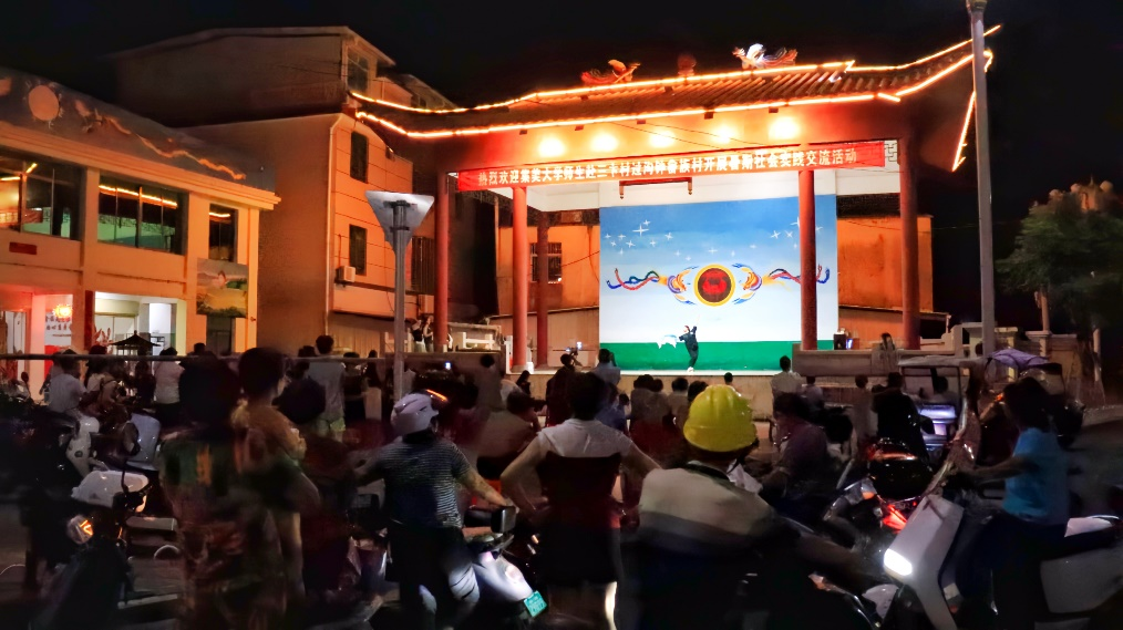 实践队前往南靖土楼云水谣、三卞村过沟钟畲族村开展文艺下乡演出活动。为传承非遗文化,实践队来到云水谣古镇,向各位木偶戏传承人学习木偶表演技术,经过老师指导,队员们亲手探索了操纵木偶的奥秘,以全新视角领悟了戏曲展现的世间百态。同时巧妙结合借助“大鱼海棠”的文旅名片,编排了一曲民乐合奏《大鱼》,深刻传达了云水谣独有的文化韵味。此外,实践队还在三卞村过沟钟畲族村,实践队精心编排了《红梅赞》《绽放》等红色革命曲目、南音演唱、畲族传统歌曲《云水间》等节目,使观众倍感亲切和喜悦。与此同时,村民们为迎接实践队的到来,身着精美的畲族服饰,向实践队表演了《畲族竹竿舞》。尤令人动容的是,当地村民在与实践队员交谈时提到:“竹竿舞的队伍中有一位七十岁的奶奶,腰上还有伤,不太能跳舞。但她一听到你们大学生过来,想要给你们展示我们畲族舞蹈,还是硬挺着来了。”