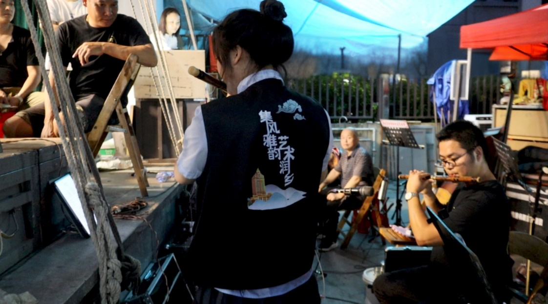 实践队队员游静学习芗剧的竹笛演奏技巧