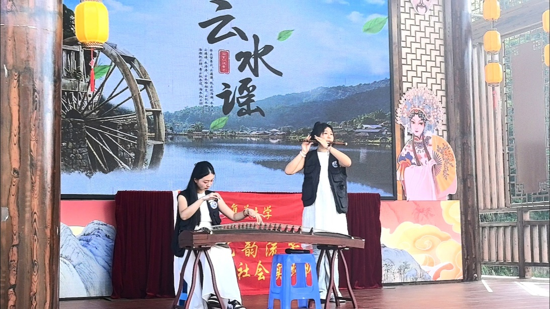 实践队队员王怡丹、游静在云水谣演奏《大鱼》