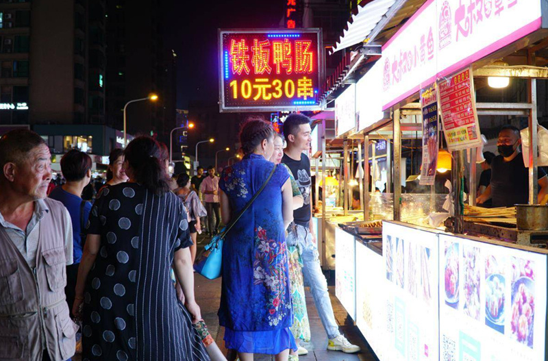 宵夜一条街,烧烤、火锅、卤菜生意火爆。