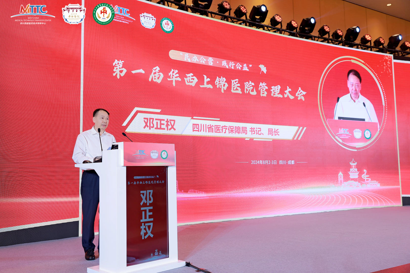 8月3日上午,大会开幕式隆重举行四川省医疗保障局党组书记、局长邓正权,四川省卫生健康委员会副主任李冰,成都高新区卫生健康局(成都高新区医疗保障局)党组书记、局长田军,四川大学华西医院常务副院长黄进分别在大会致辞。四川大学华西医院上锦医院院长徐才刚主持开幕式。
