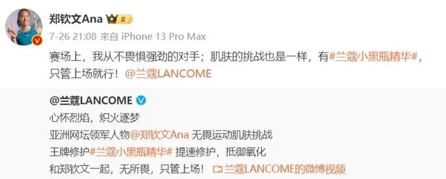 一位行业人士告诉记者,品牌赞助注重运动员展现出的生命力,以及在体育赛事中展现出的“拼搏、向上、永不服输”等美好品质。而郑钦文赛场内外的自信、率真,以及十足的国际范,更是其商业价值所在。